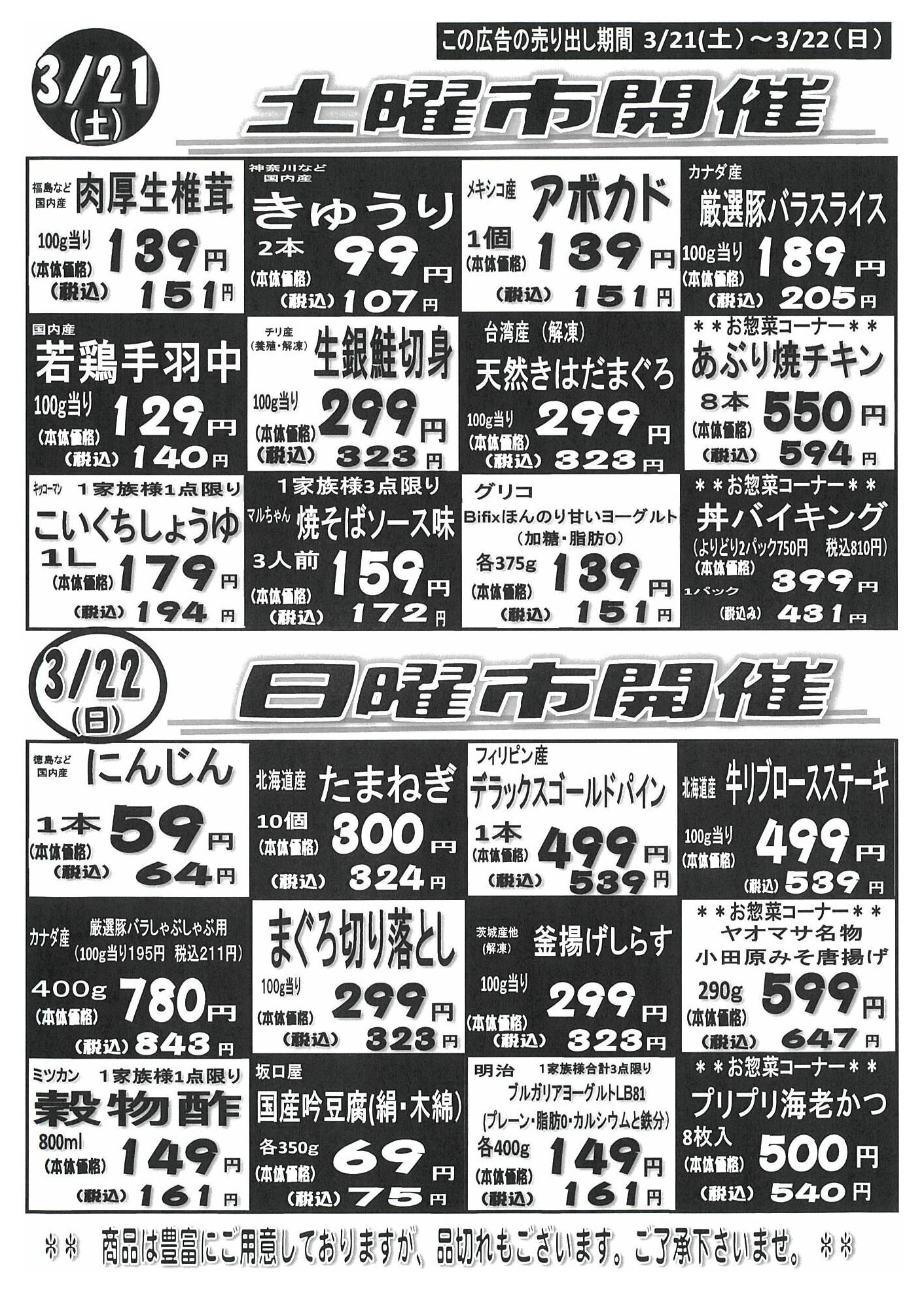 特売やセール情報など最新のチラシを掲載中。(1種類、2枚のチラシを掲載しています)