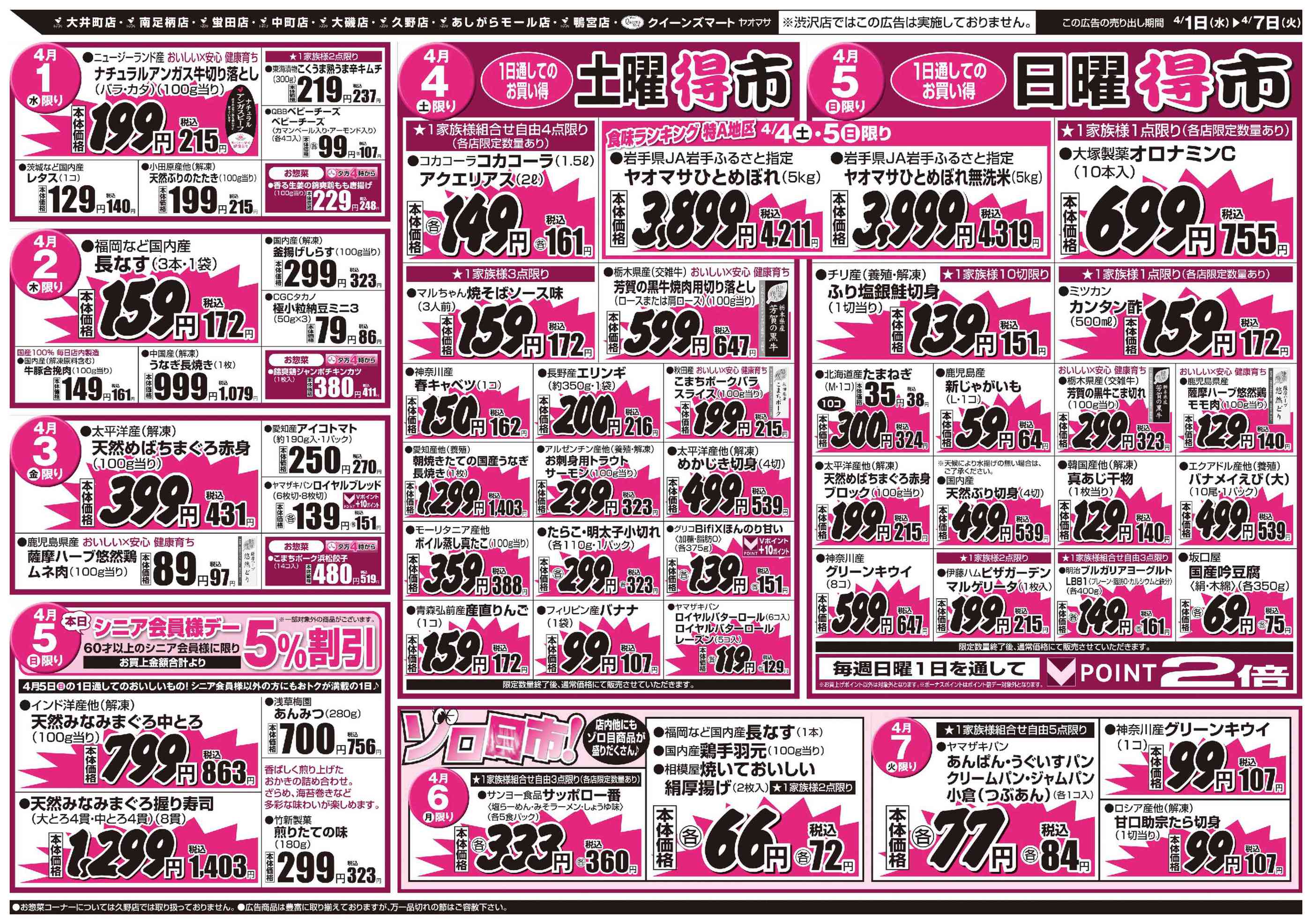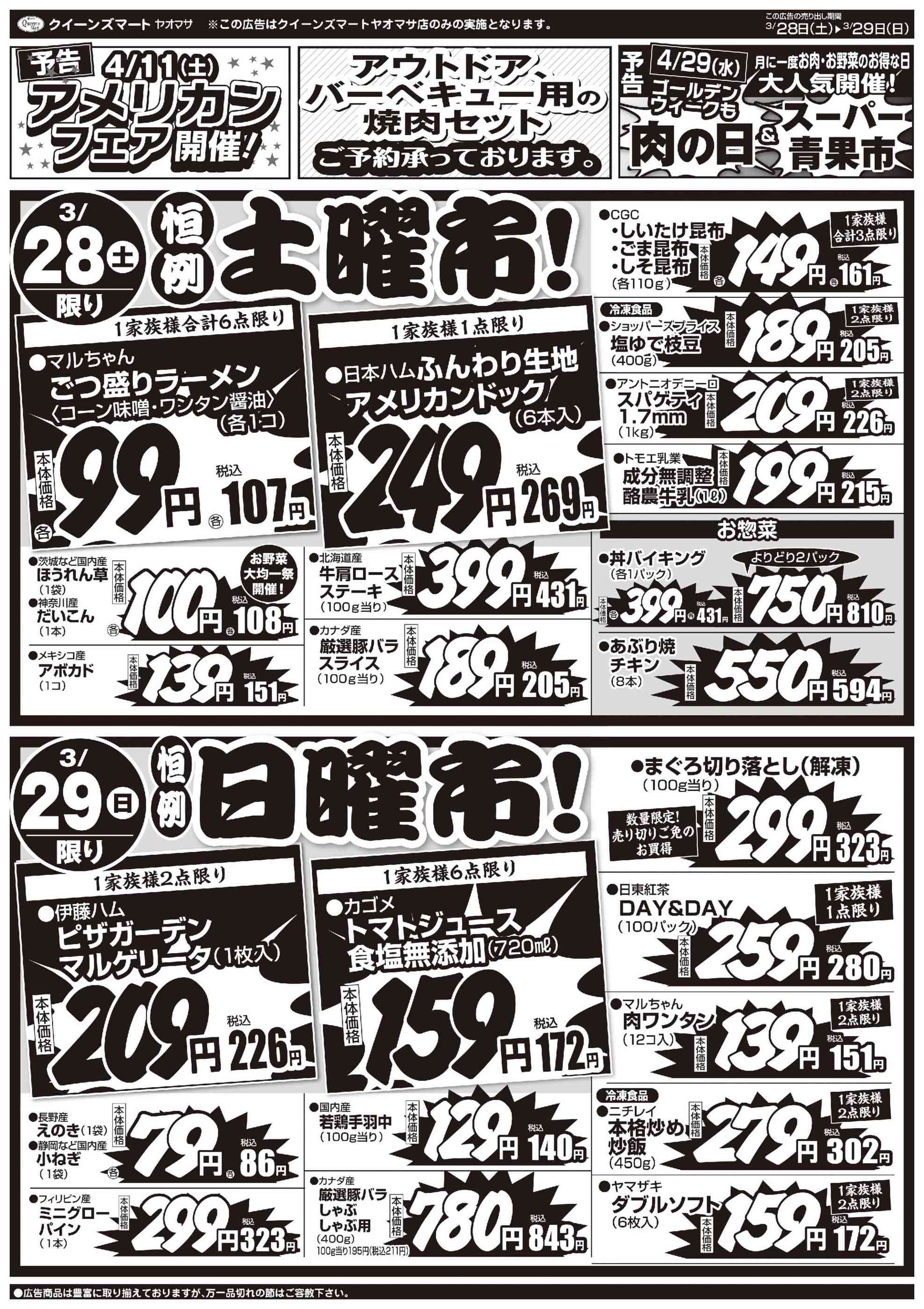 クイーンズマート・ヤオマサ今週のチラシ(2026年3月30日〜4月5日)