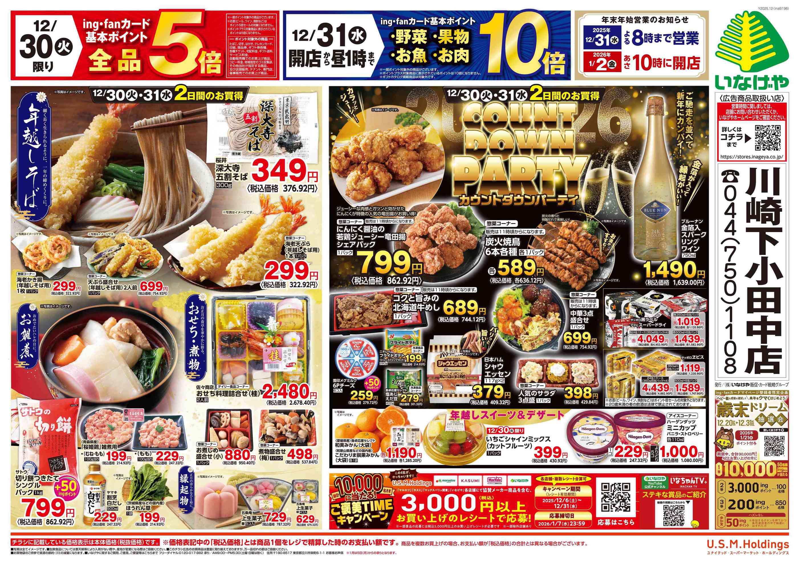 いなげや川崎下小田中店今週のチラシ(2025年12月29日〜1月4日)