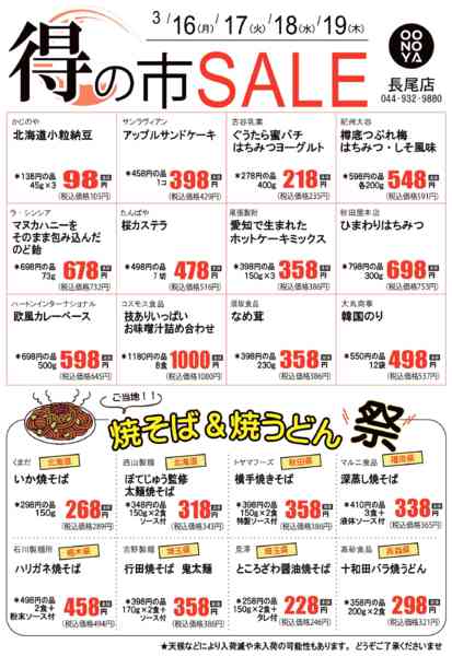※「店舗の掲載内容について」チラシガイドに掲載している情報は、独自に調査した内容及びユーザーから頂いた情報を掲載しています。お気づきの点がございましたら「お問い合わせ」よりご連絡ください。また店舗の営業状況、商品に関するお問い合わせは直接店舗事業者にご確認ください。