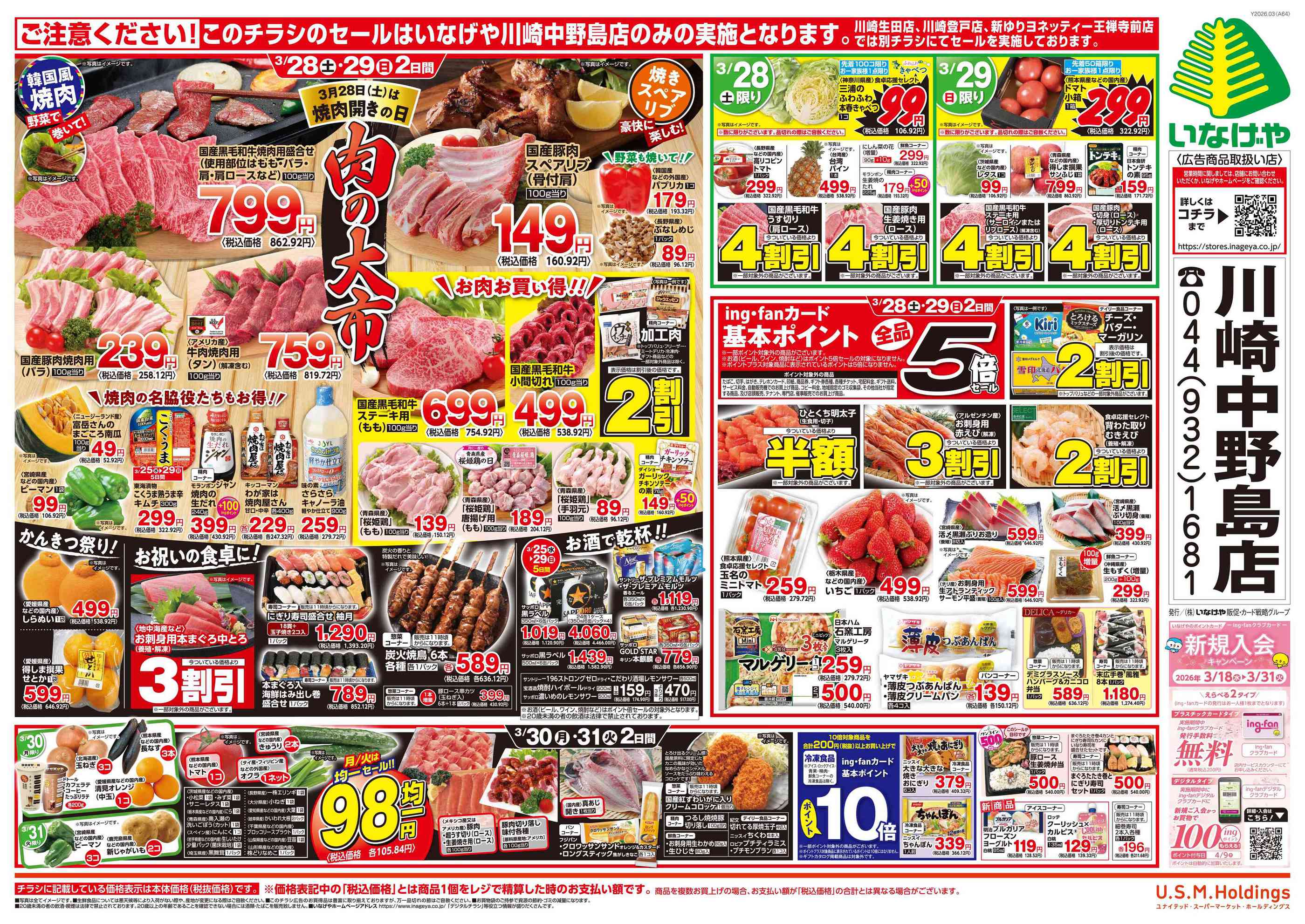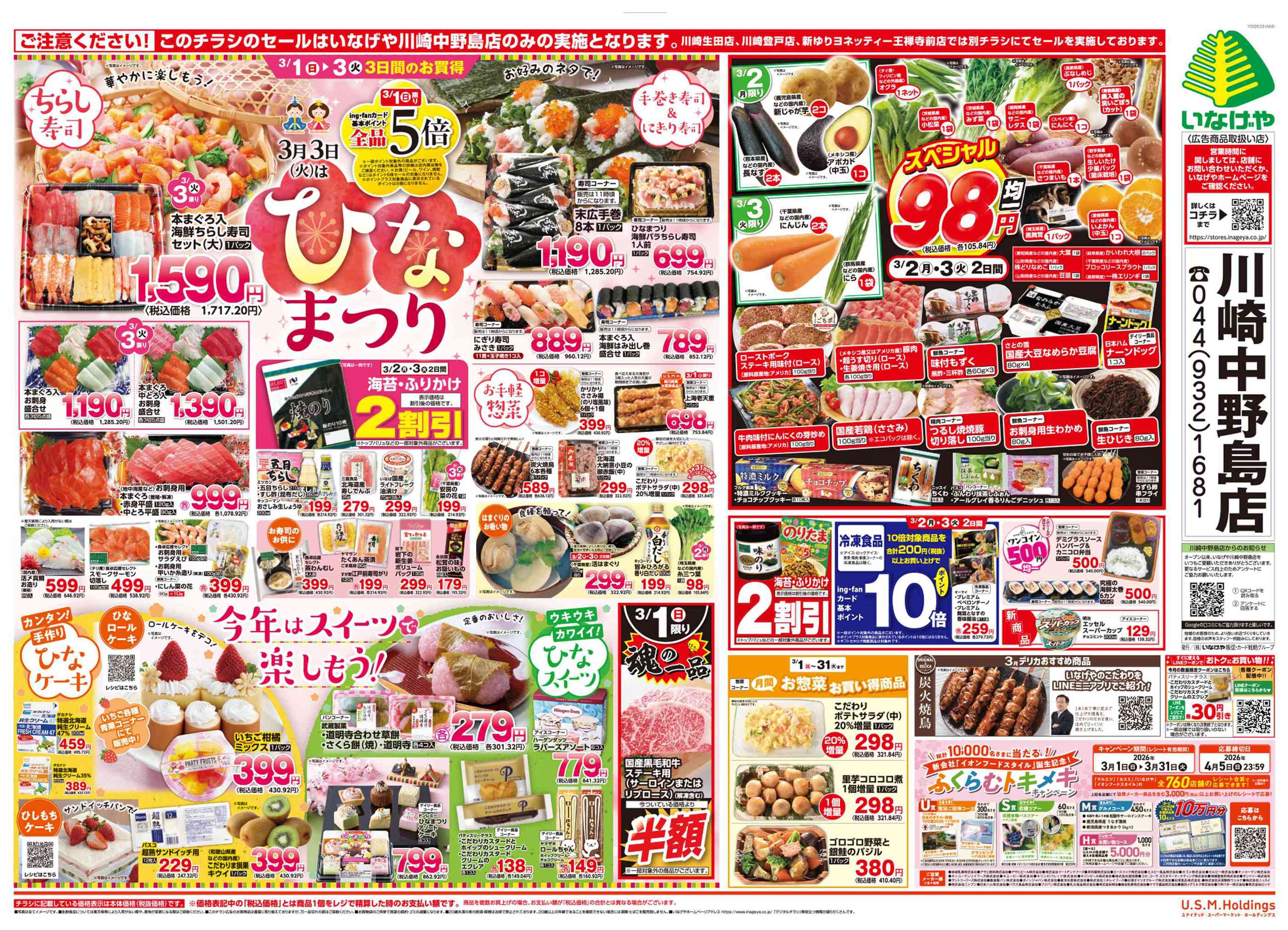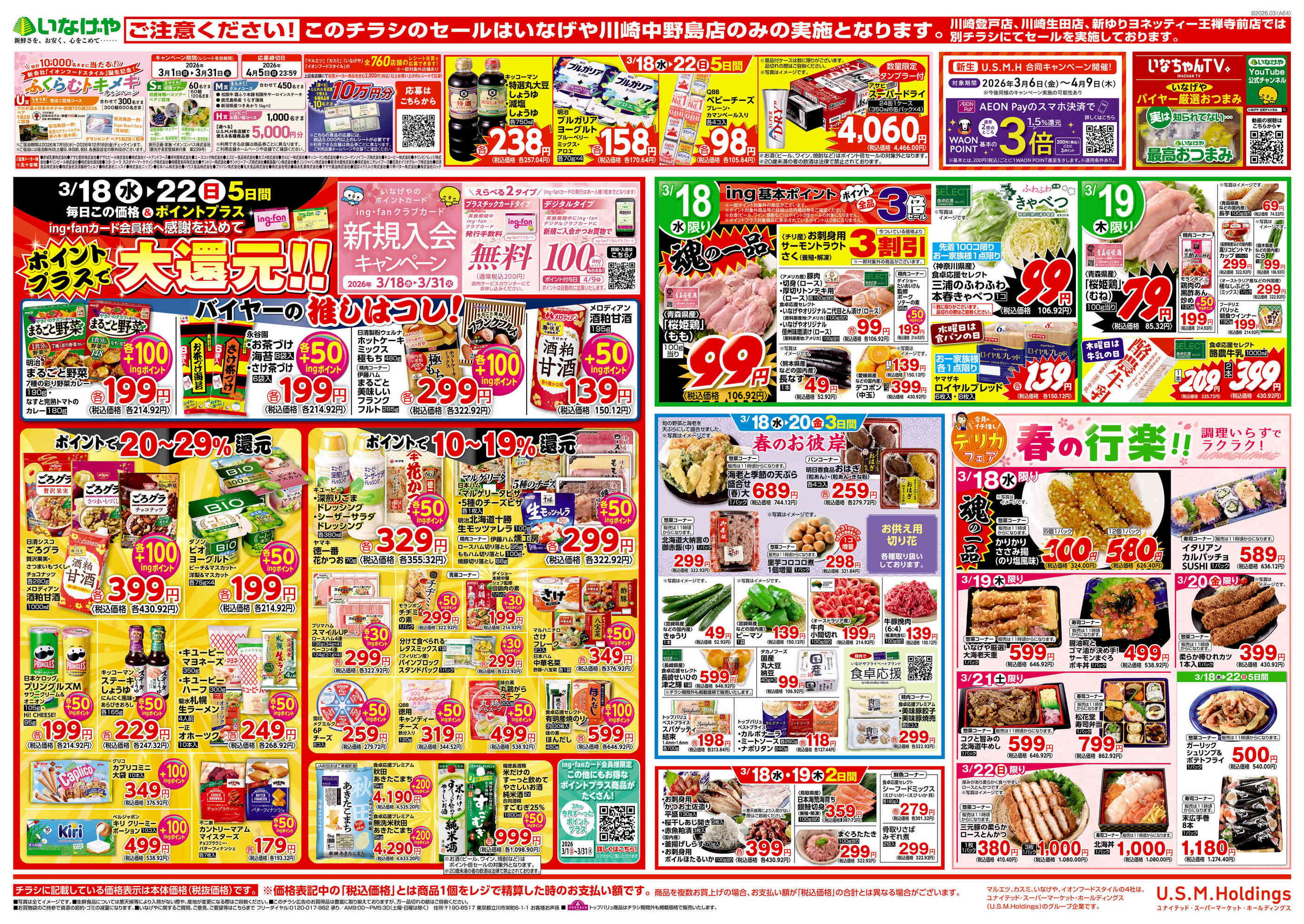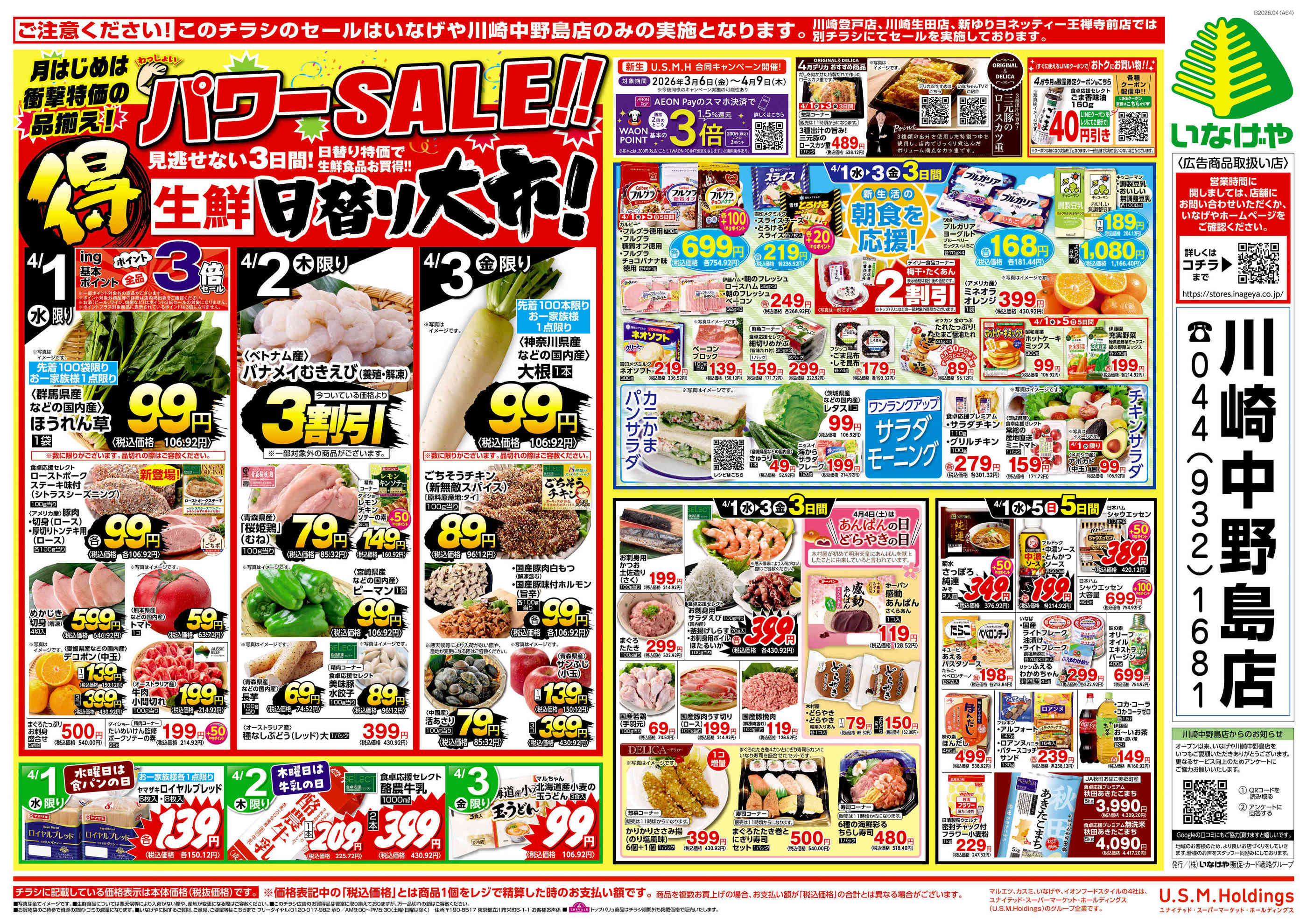 いなげや川崎中野島店今週のチラシ(2026年3月30日〜4月5日)