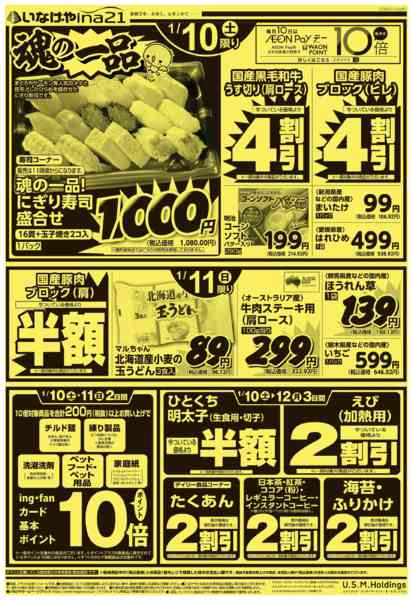 ※「店舗の掲載内容について」チラシガイドに掲載している情報は、独自に調査した内容及びユーザーから頂いた情報を掲載しています。お気づきの点がございましたら「お問い合わせ」よりご連絡ください。また店舗の営業状況、商品に関するお問い合わせは直接店舗事業者にご確認ください。