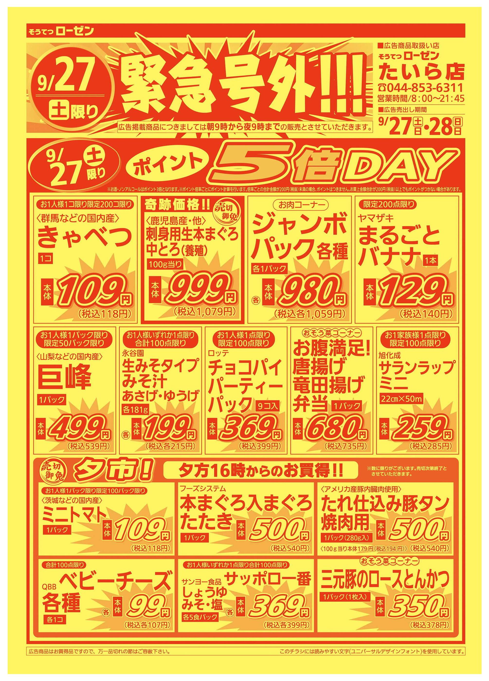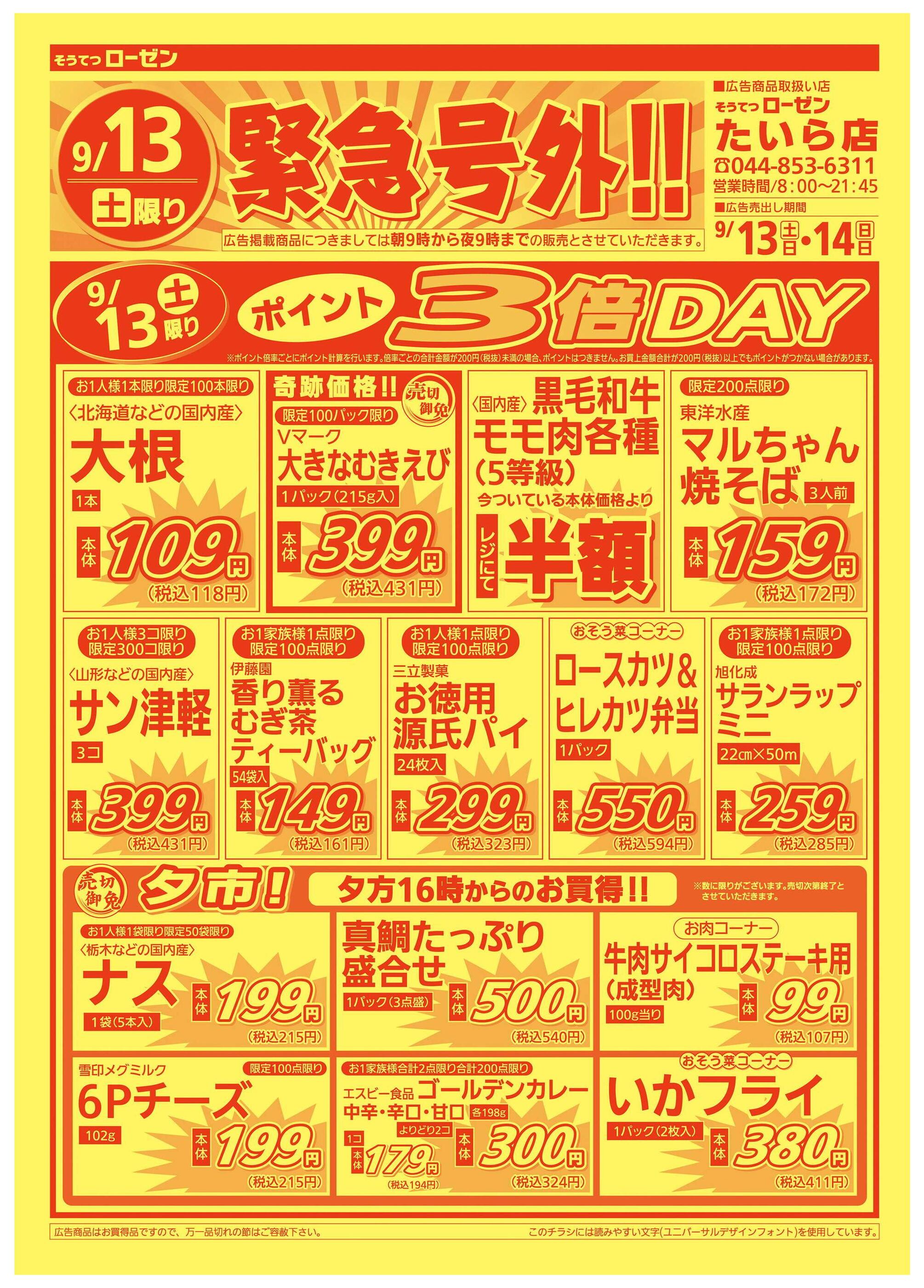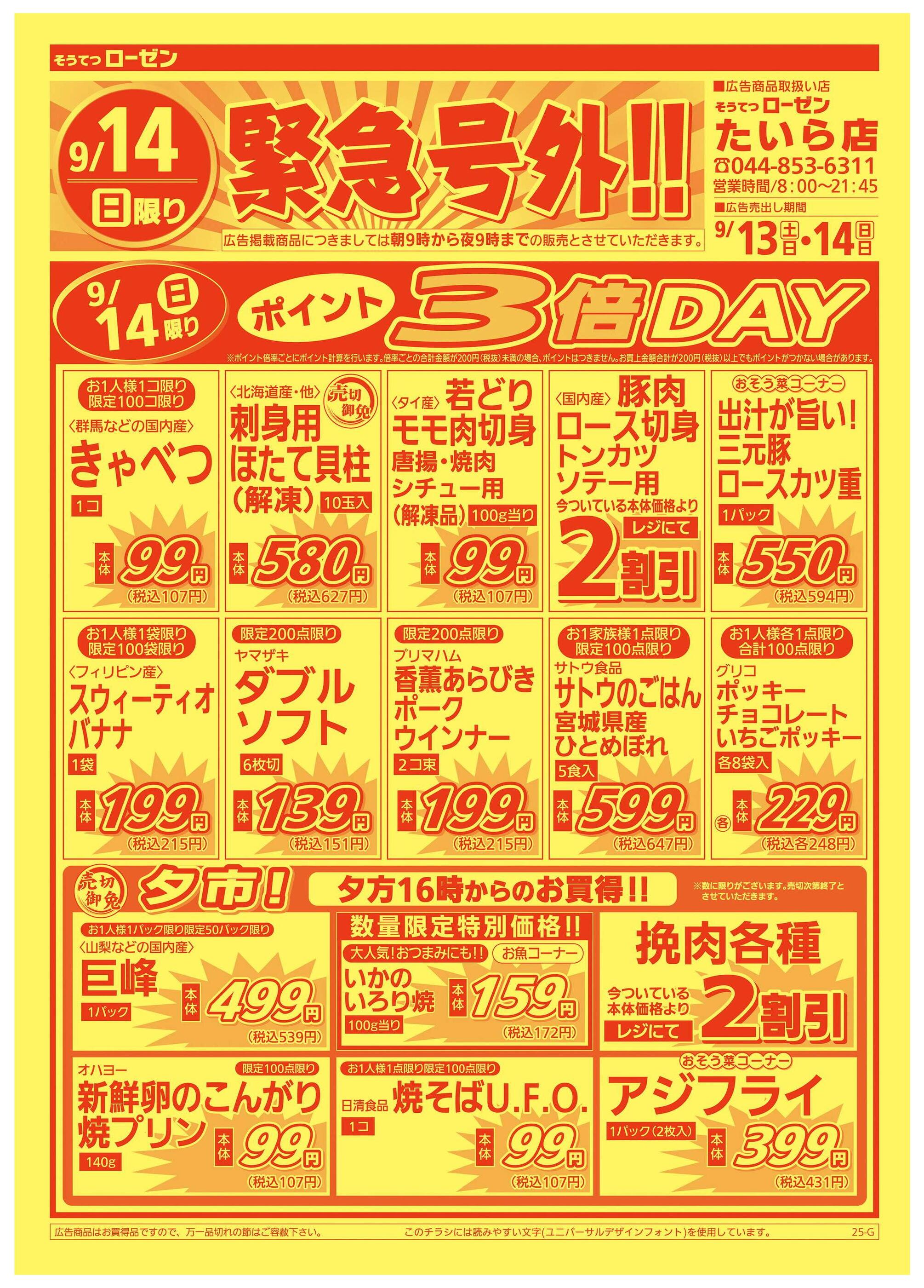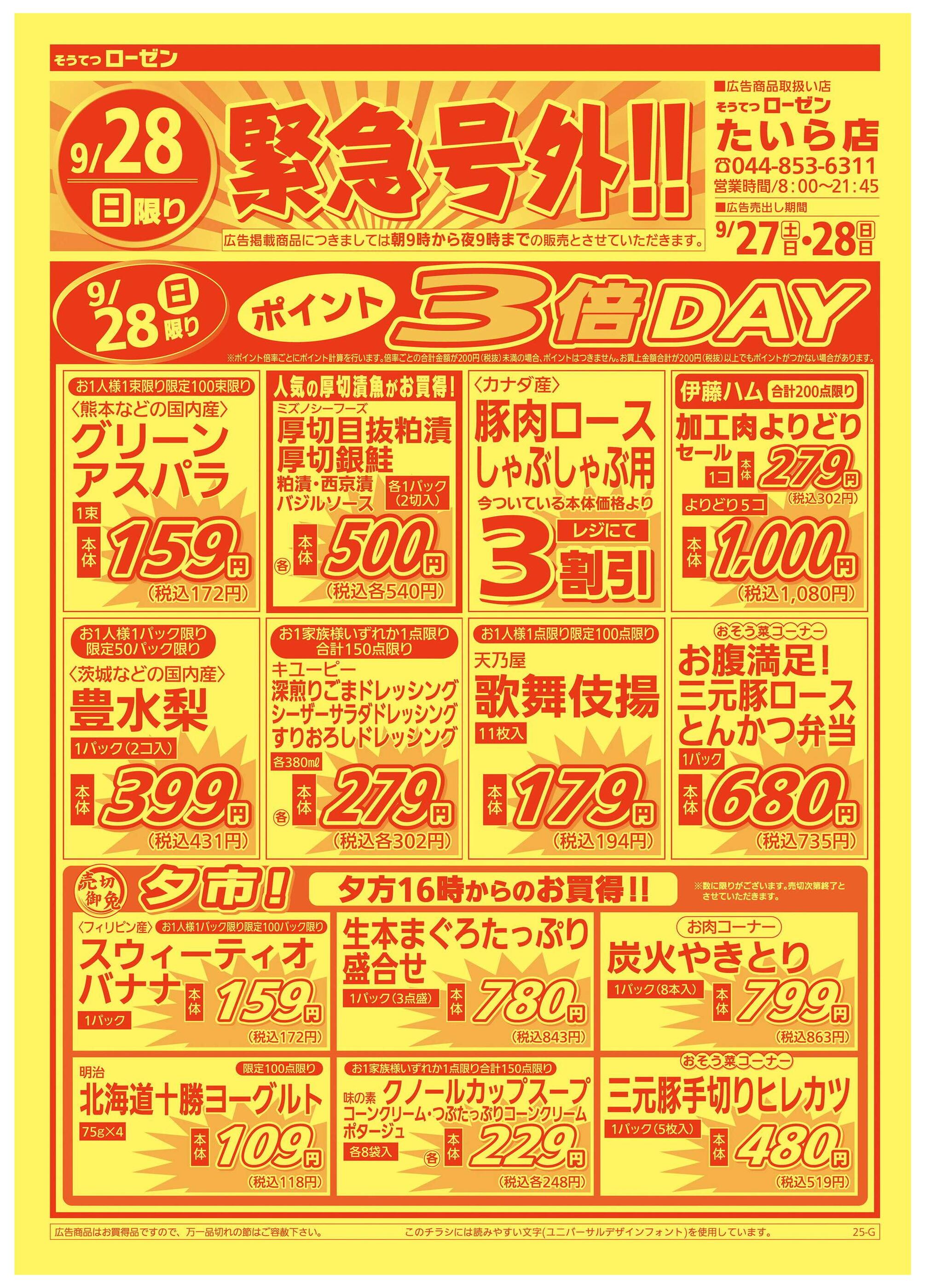 そうてつローゼンたいら店今週のチラシ(2025年9月29日〜10月5日)
