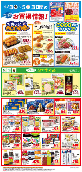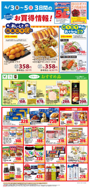特売やセール情報など最新のチラシを掲載中。(5種類、6枚のチラシを掲載しています)