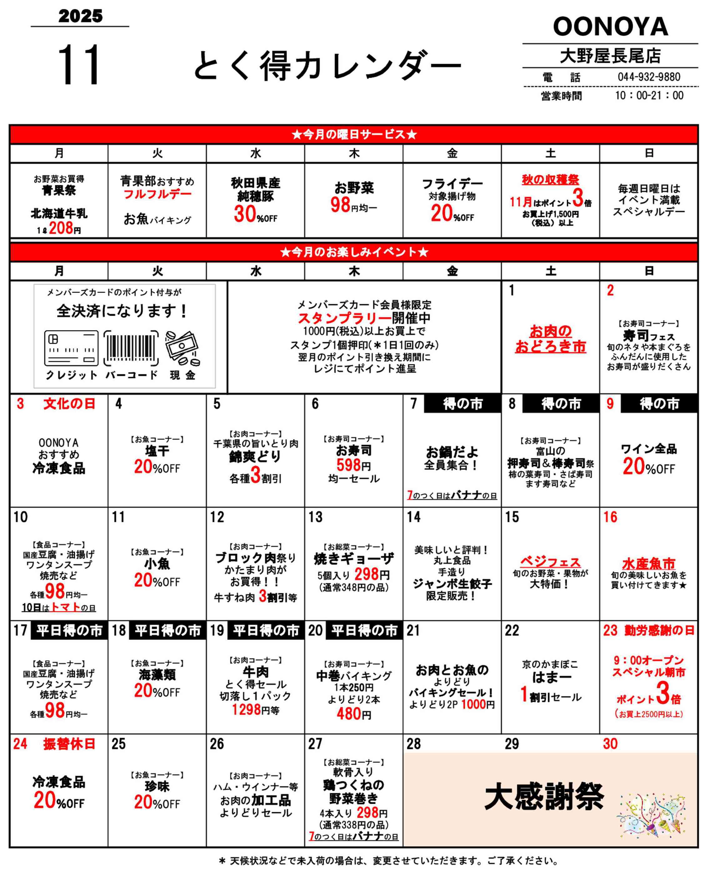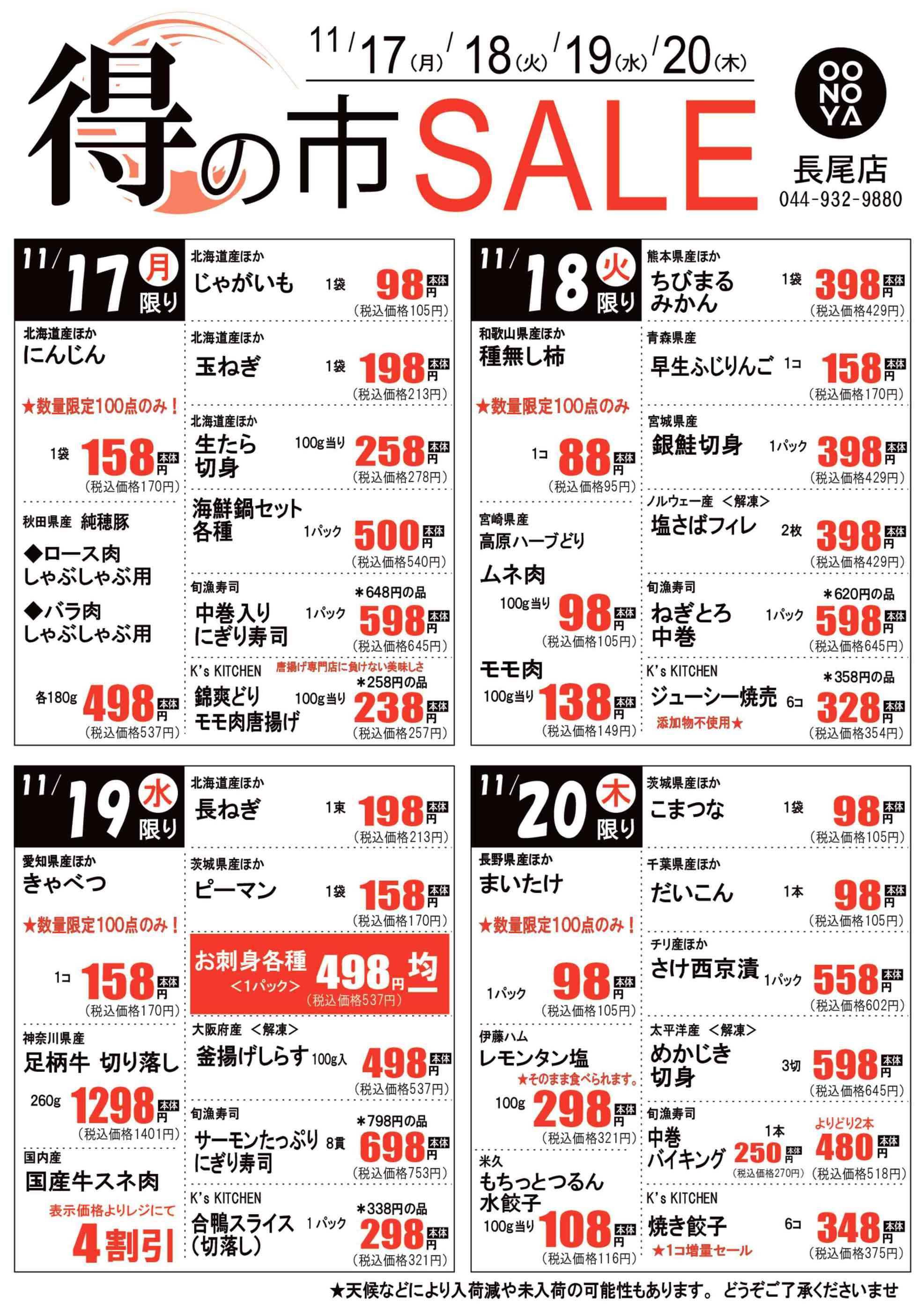 大野屋 長尾店今週のチラシ(2025年11月10日〜11月16日)