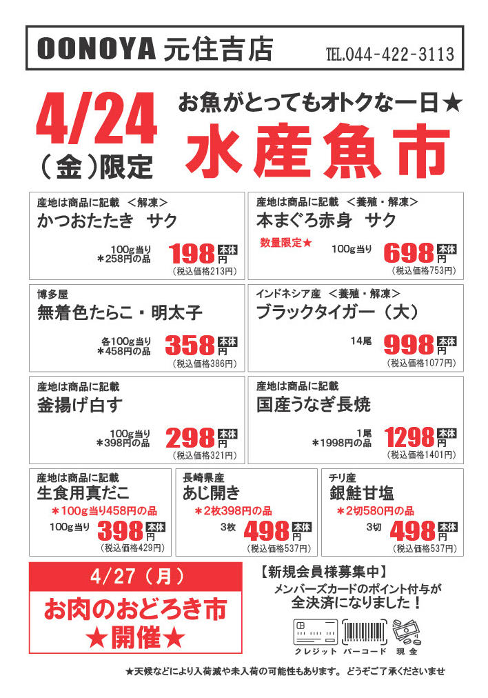 大野屋 元住吉店今週のチラシ(2026年4月20日〜4月26日)
