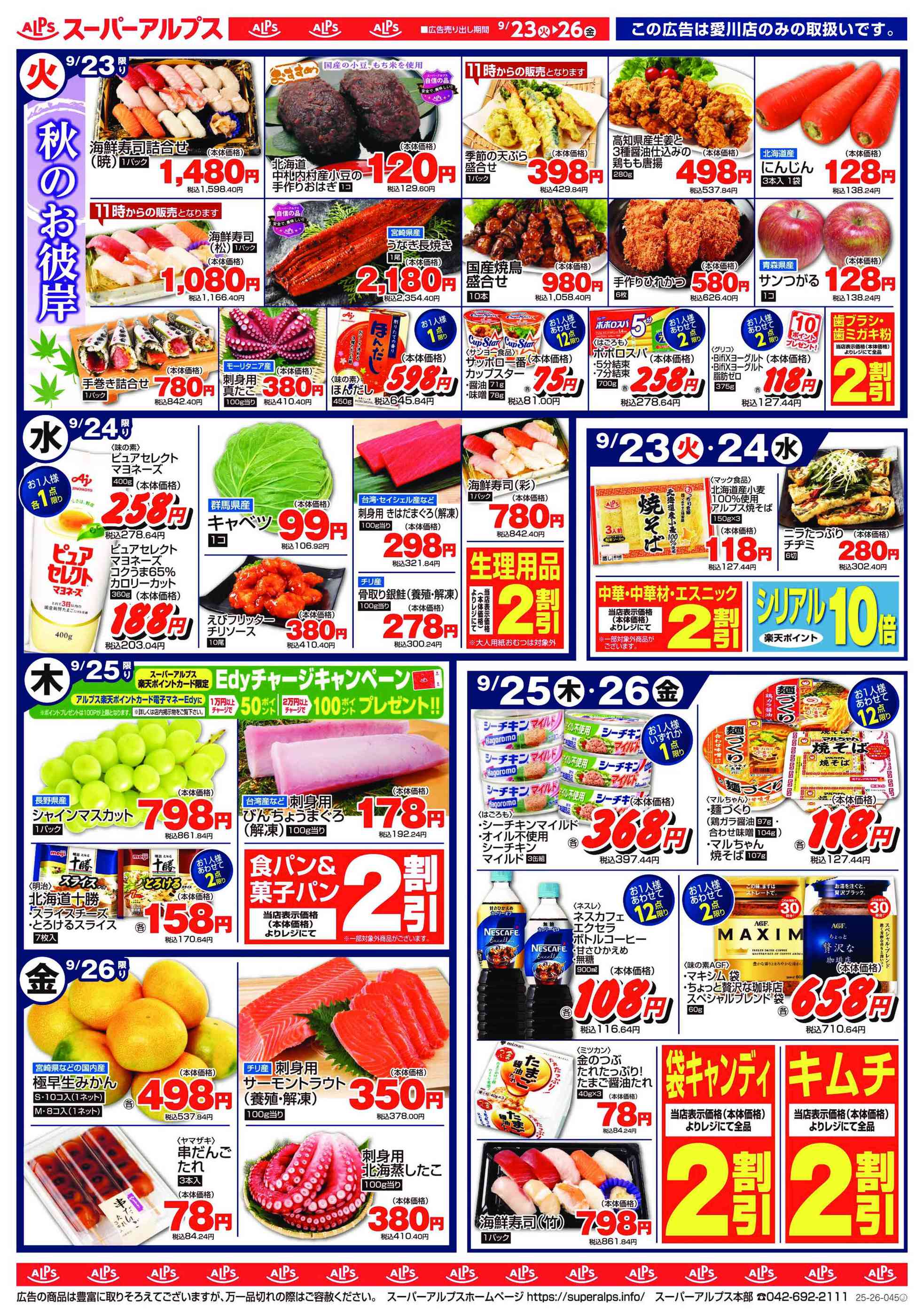 スーパーアルプス愛川店今週のチラシ(2025年9月29日〜10月5日)