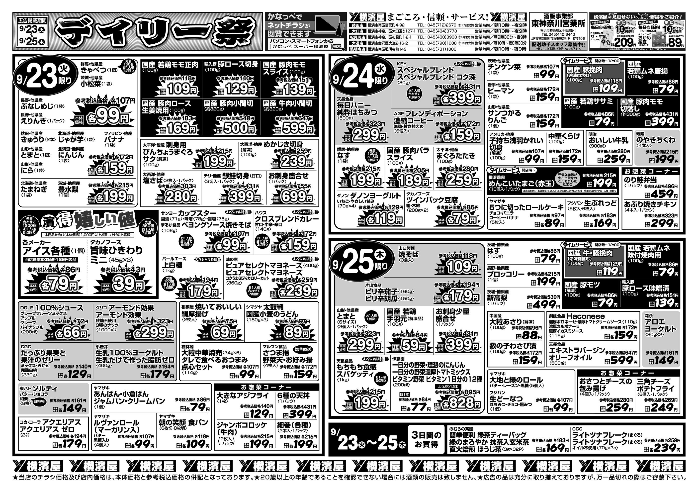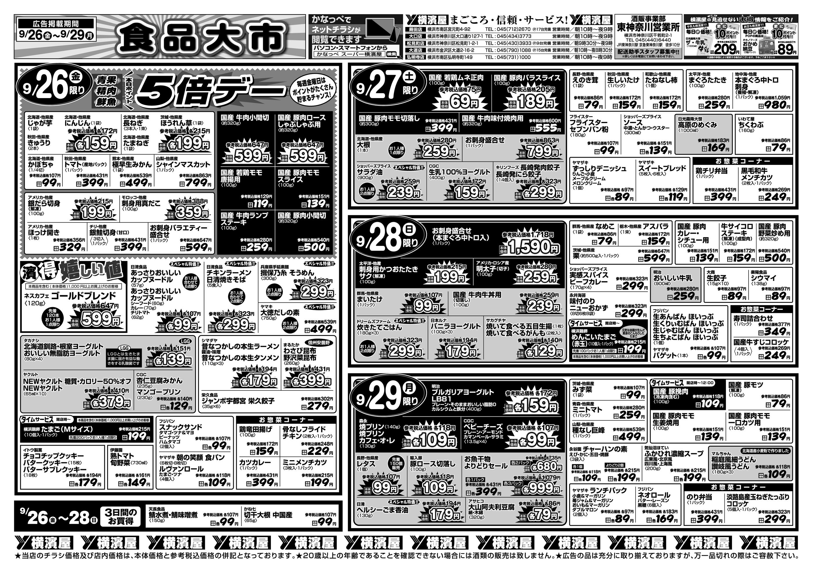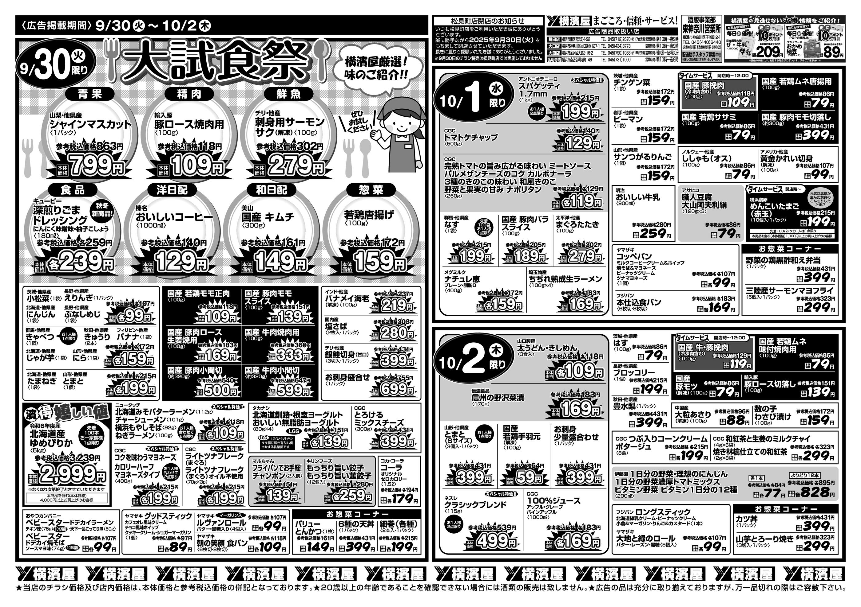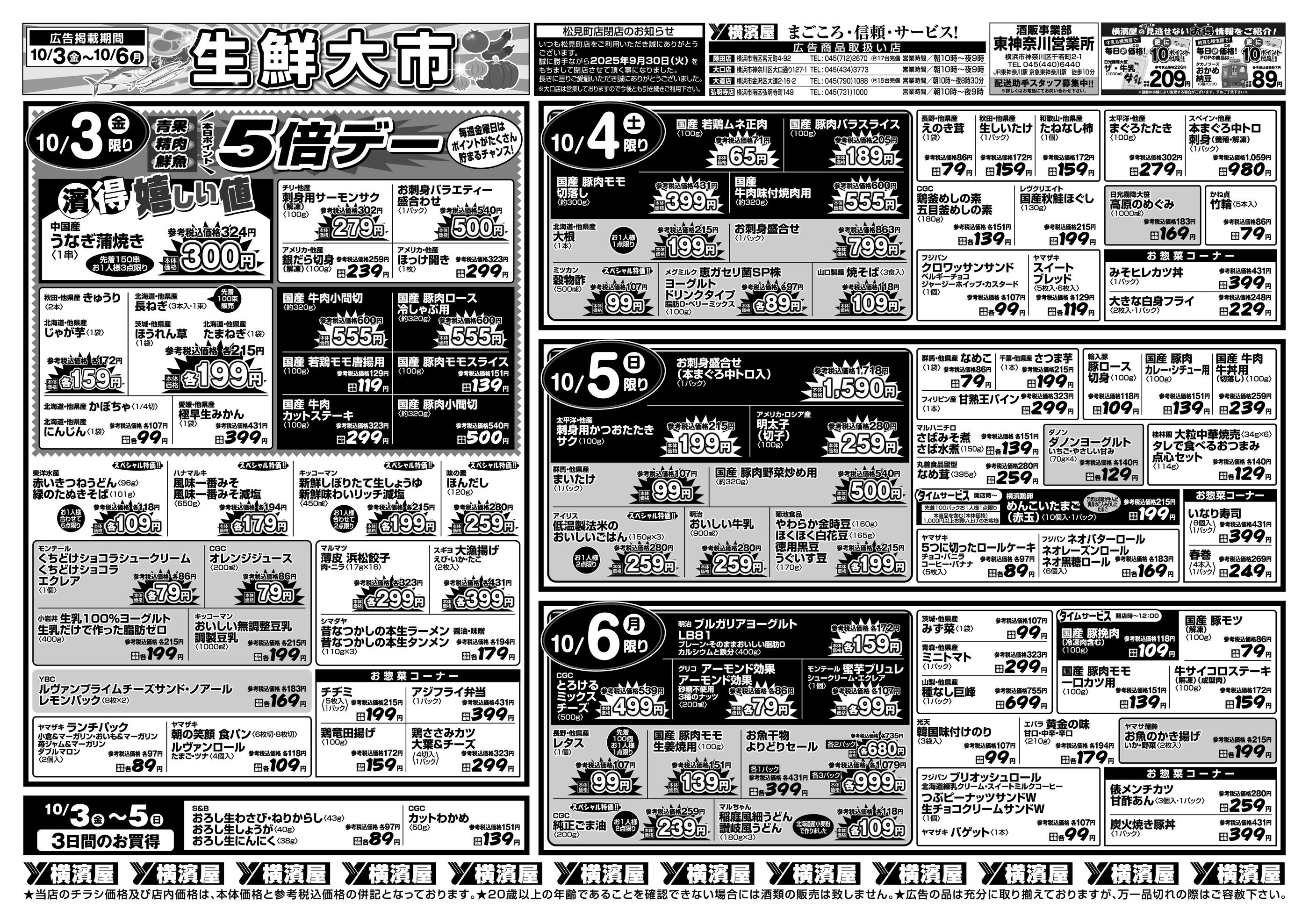 スーパー横濱屋蒔田店今週のチラシ(2025年9月29日〜10月5日)