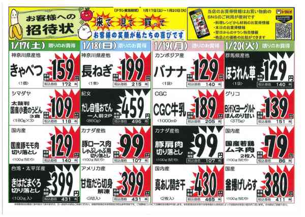 特売やセール情報など最新のチラシを掲載中。(4種類、4枚のチラシを掲載しています)