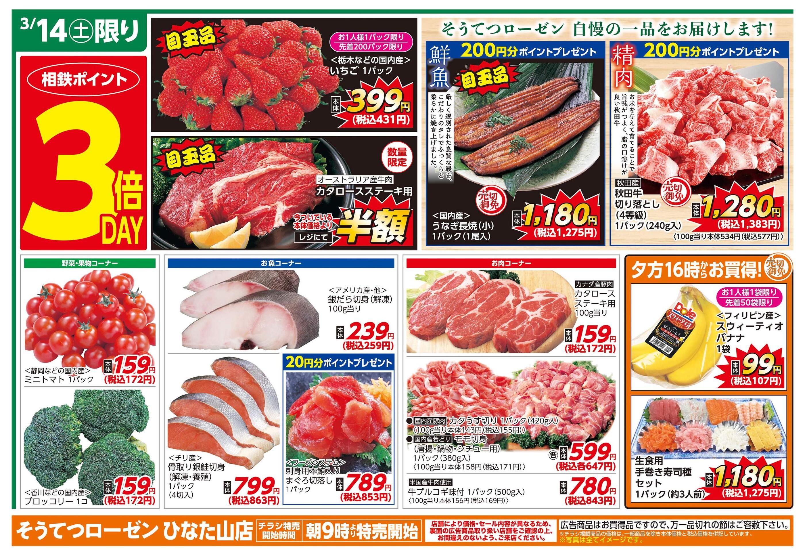 そうてつローゼンひなた山店今週のチラシ(2026年3月16日〜3月22日)