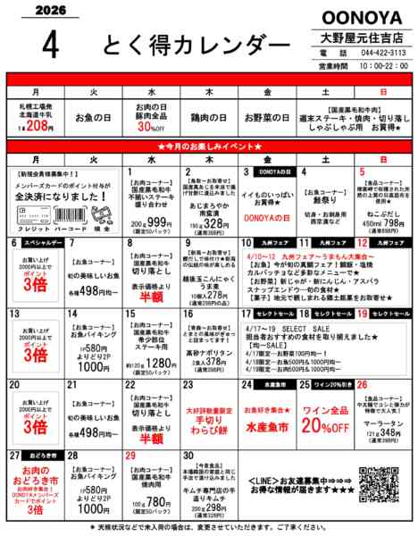 特売やセール情報など最新のチラシを掲載中。(4種類、4枚のチラシを掲載しています)
