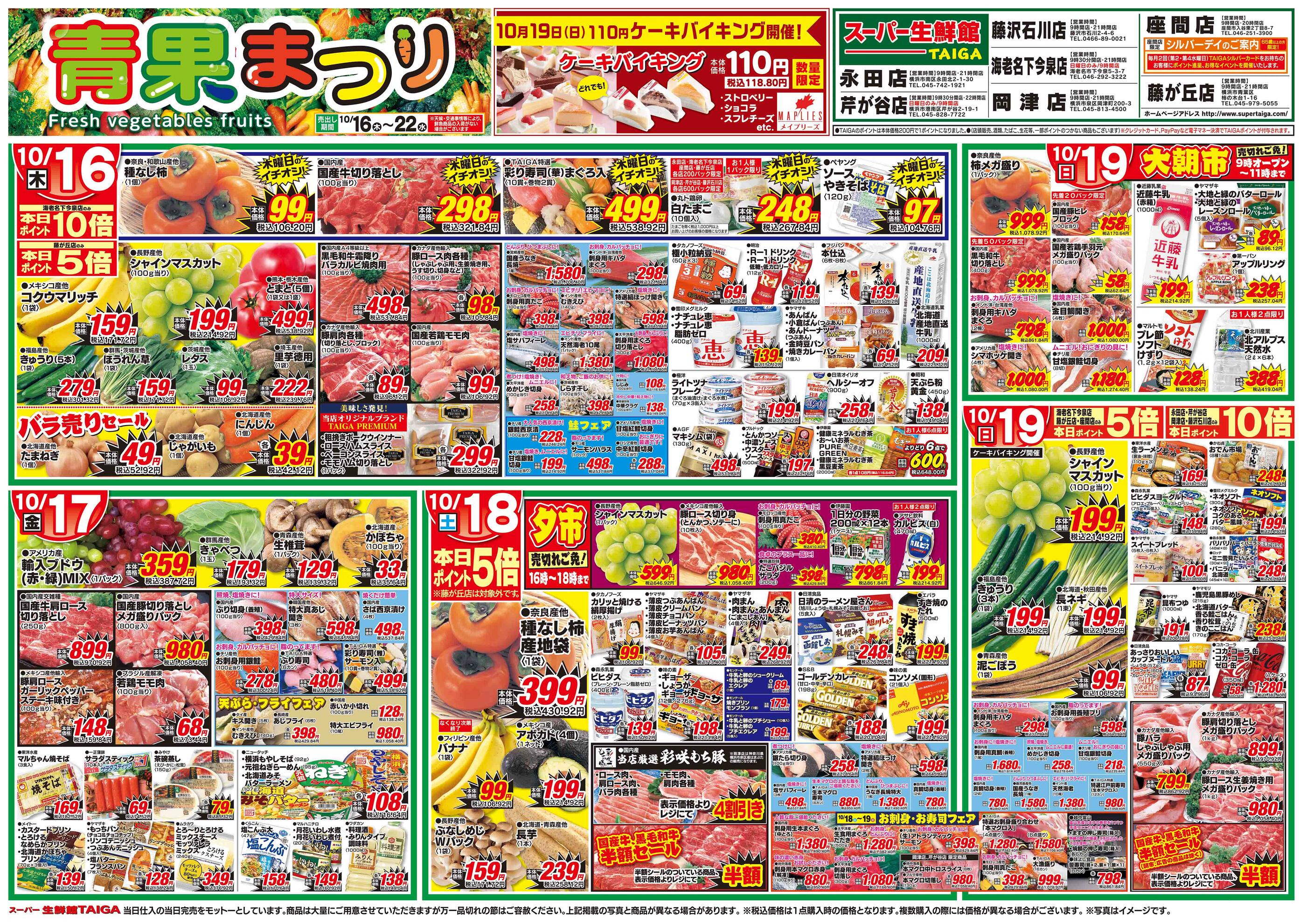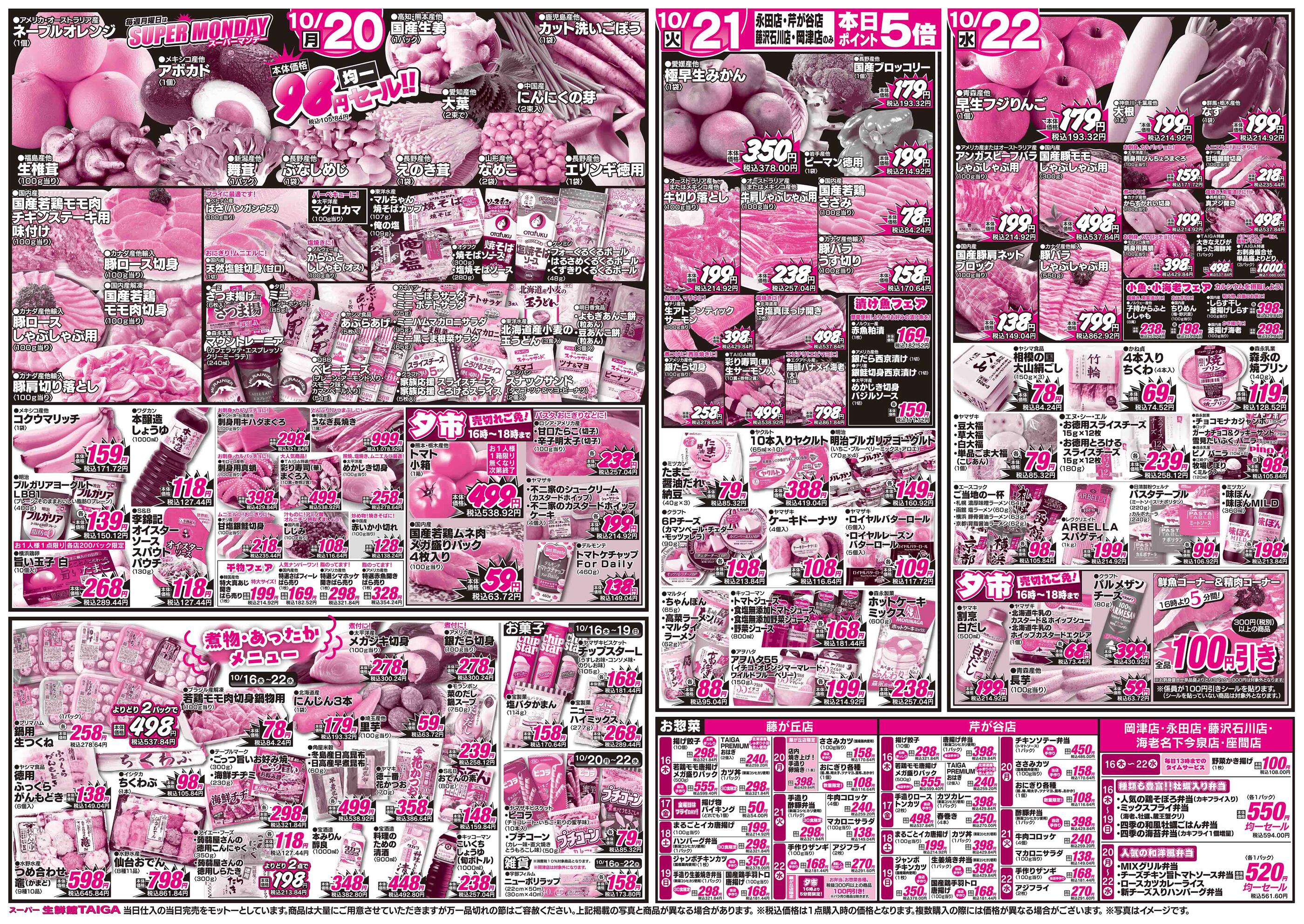 スーパー生鮮館TAIGA芹が谷店今週のチラシ(2025年10月20日〜10月26日)