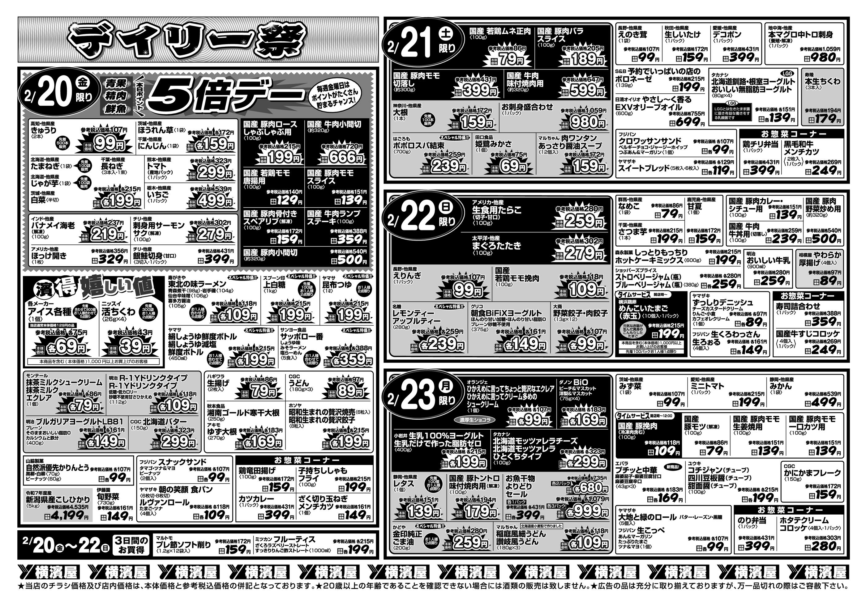 スーパー横濱屋大道店今週のチラシ(2026年2月16日〜2月22日)