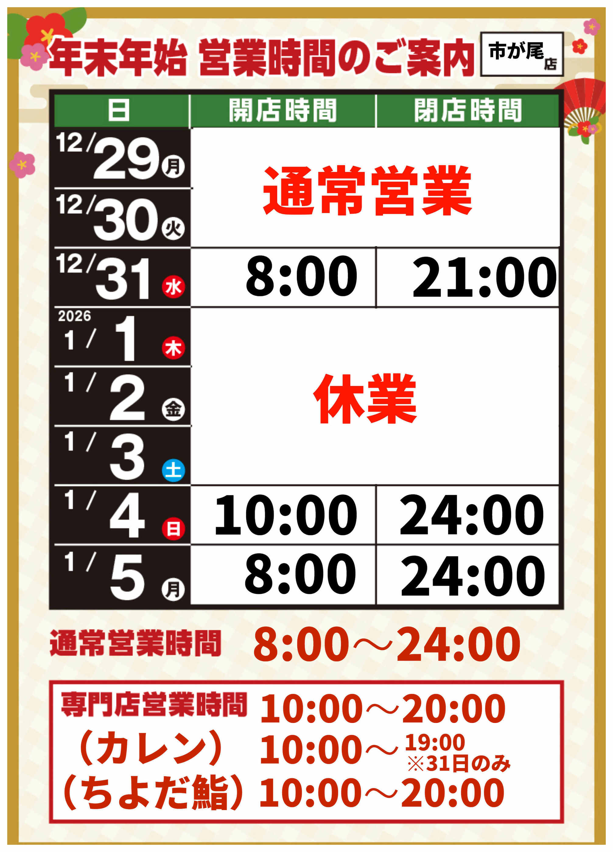 東急ストア市が尾店今週のチラシ(2025年12月29日〜1月4日)