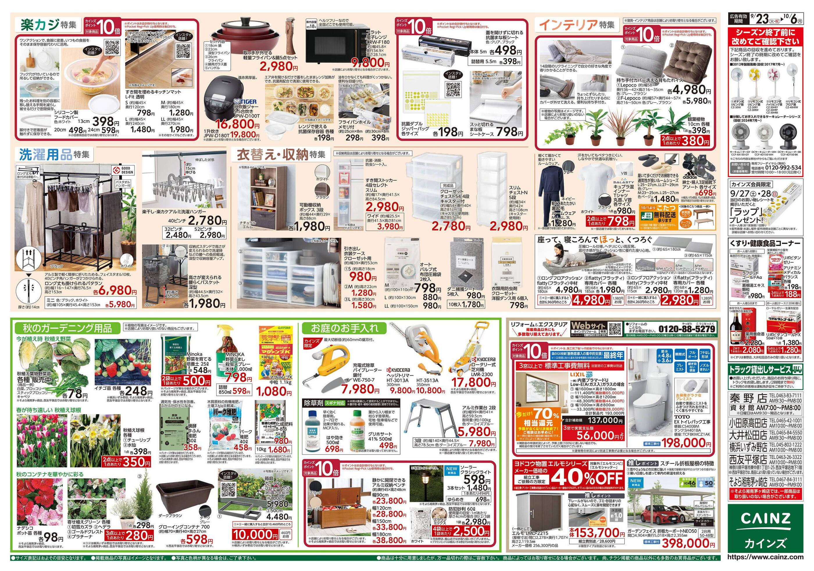 カインズ秦野店今週のチラシ(2025年9月29日〜10月5日)