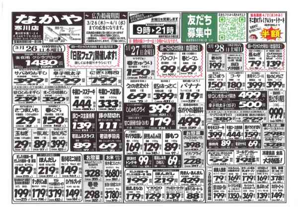 特売やセール情報など最新のチラシを掲載中。(4種類、7枚のチラシを掲載しています)