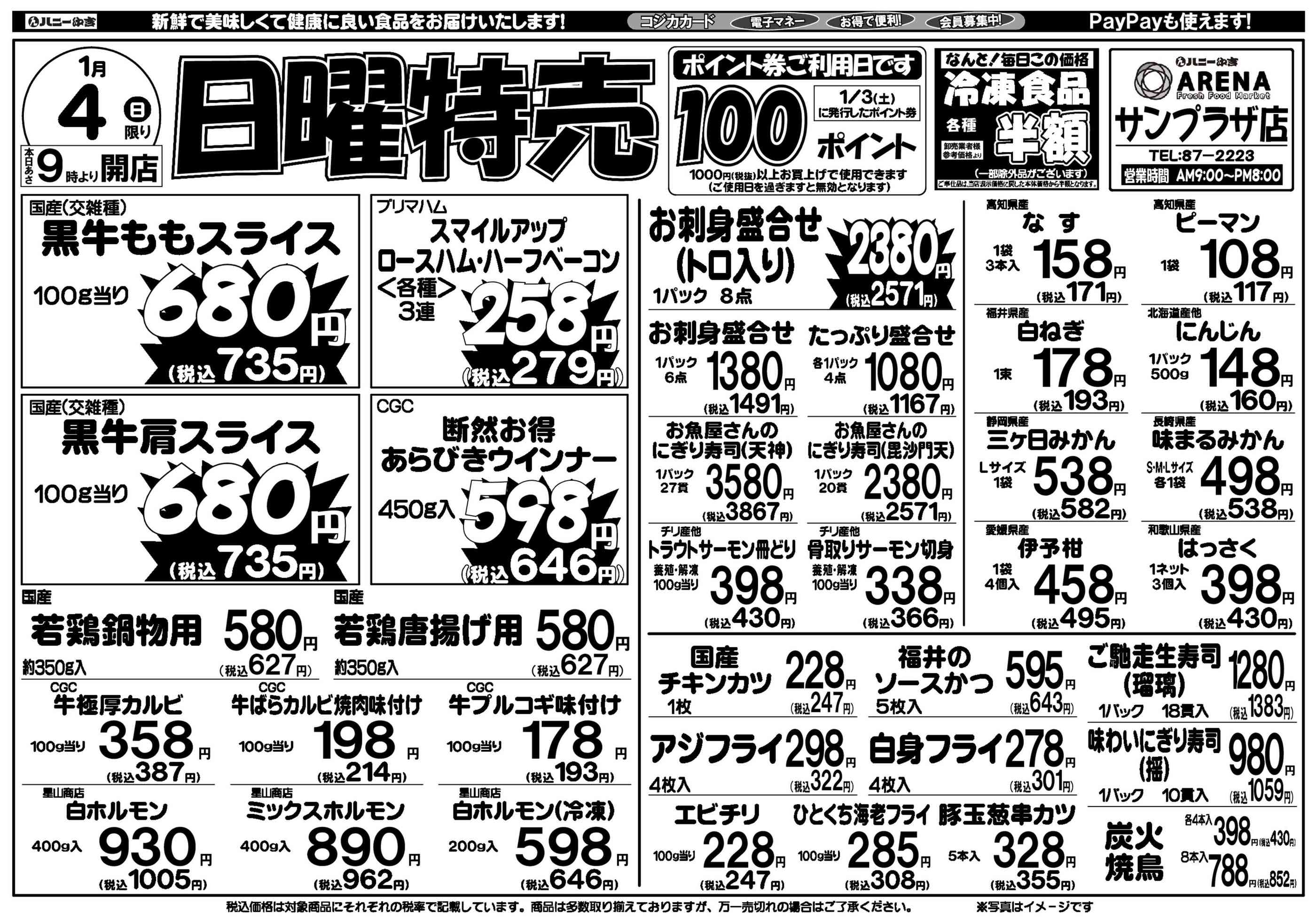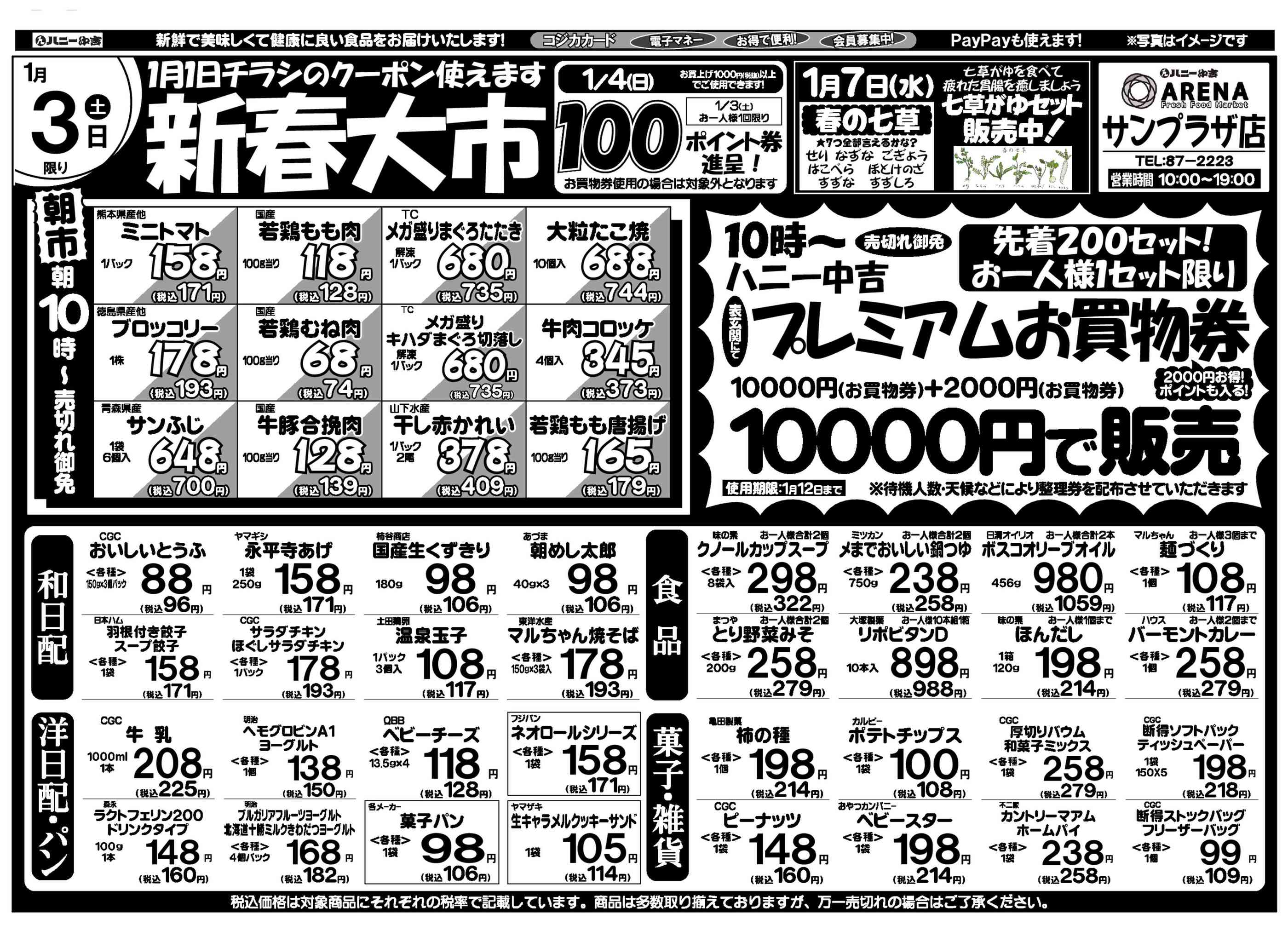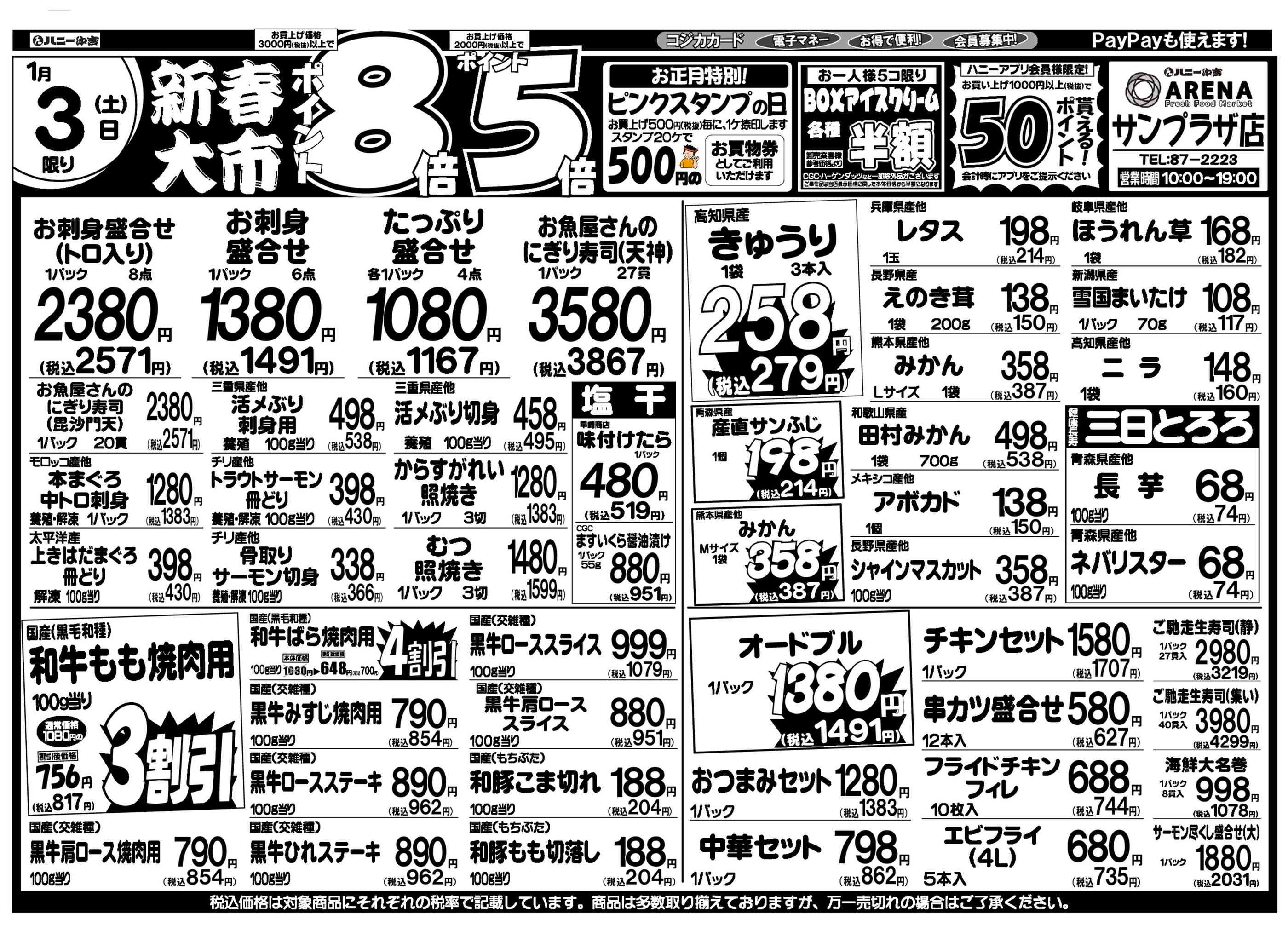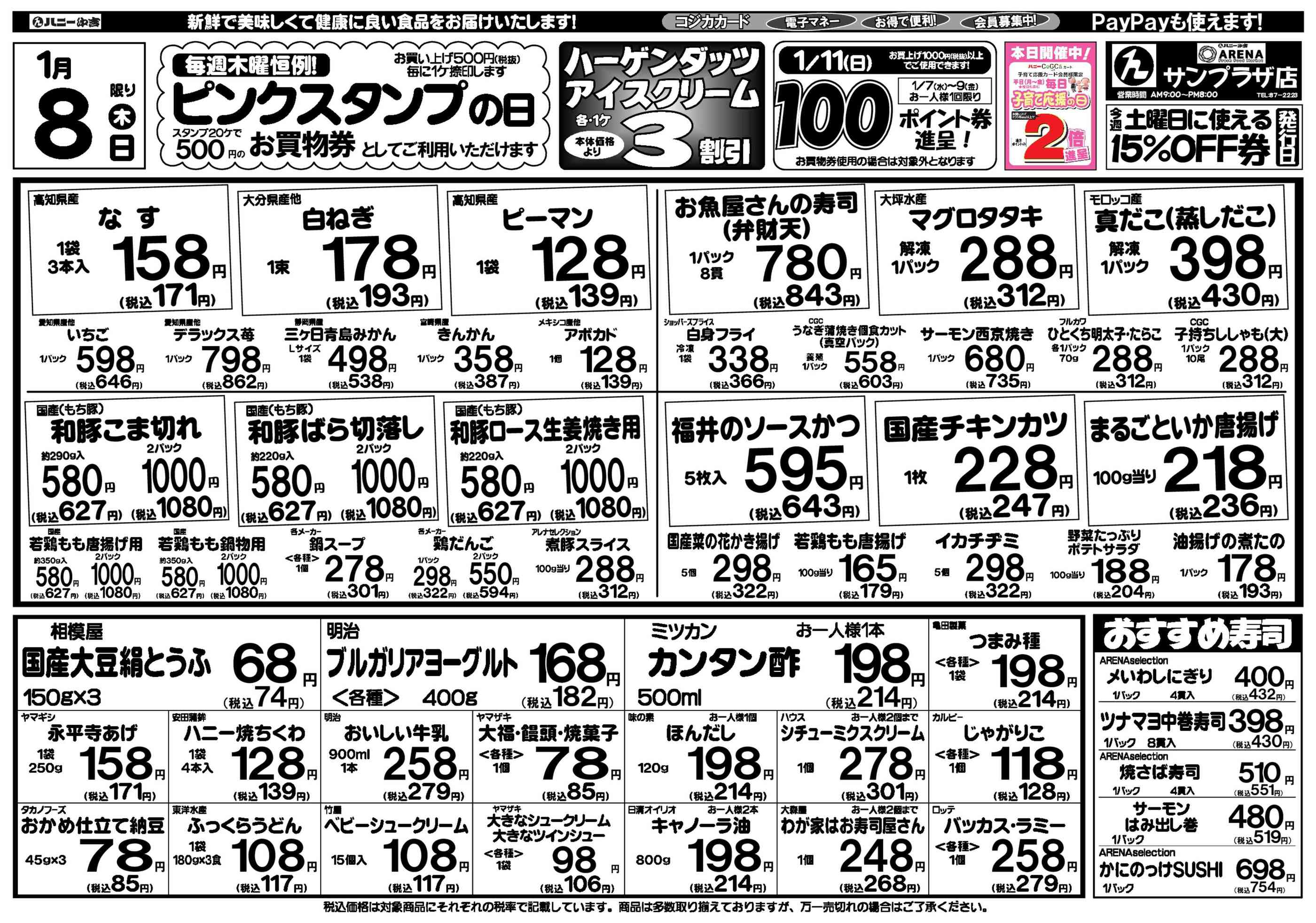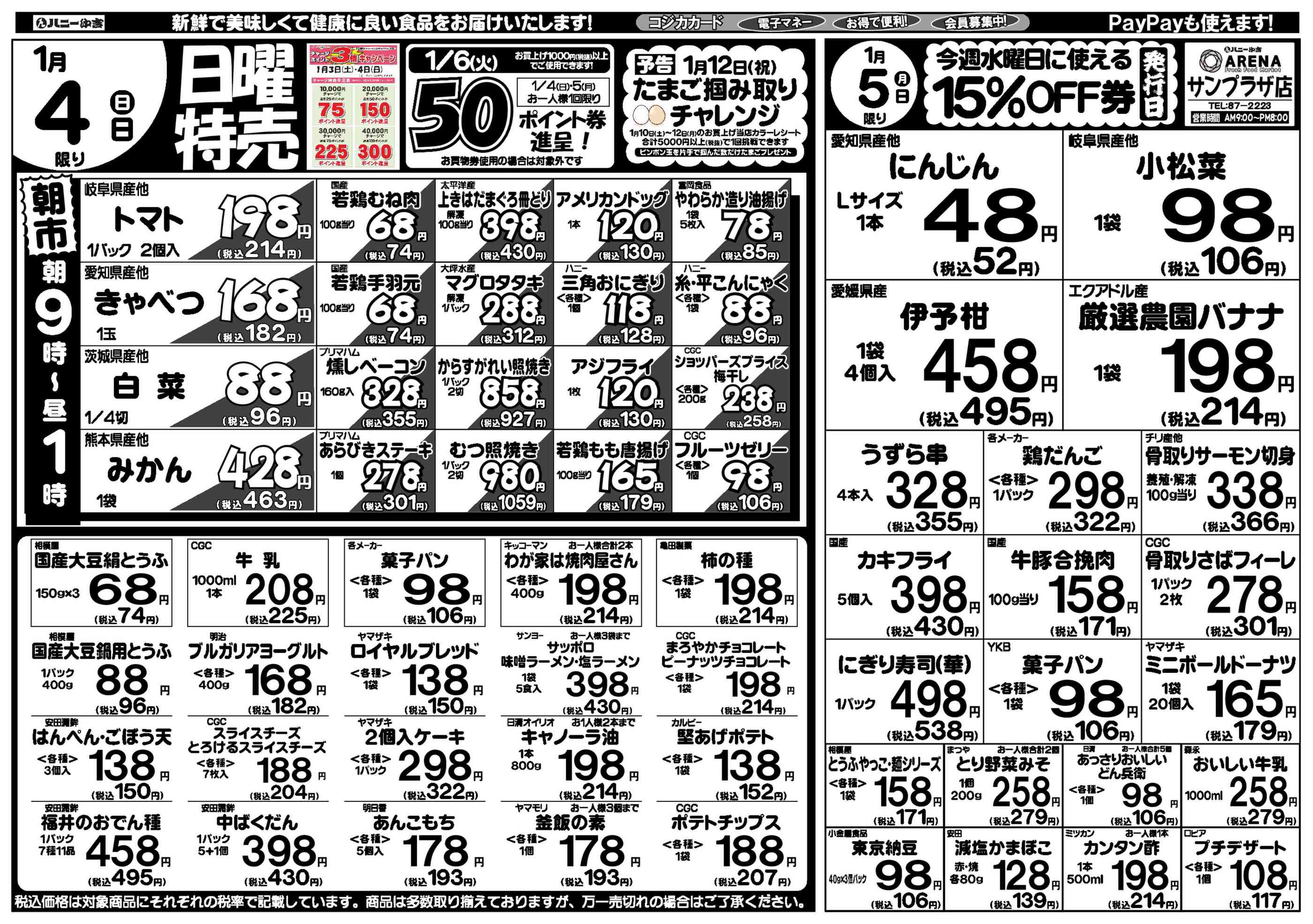 ハニーアレナサンプラザ店今週のチラシ(2026年1月5日〜1月11日)