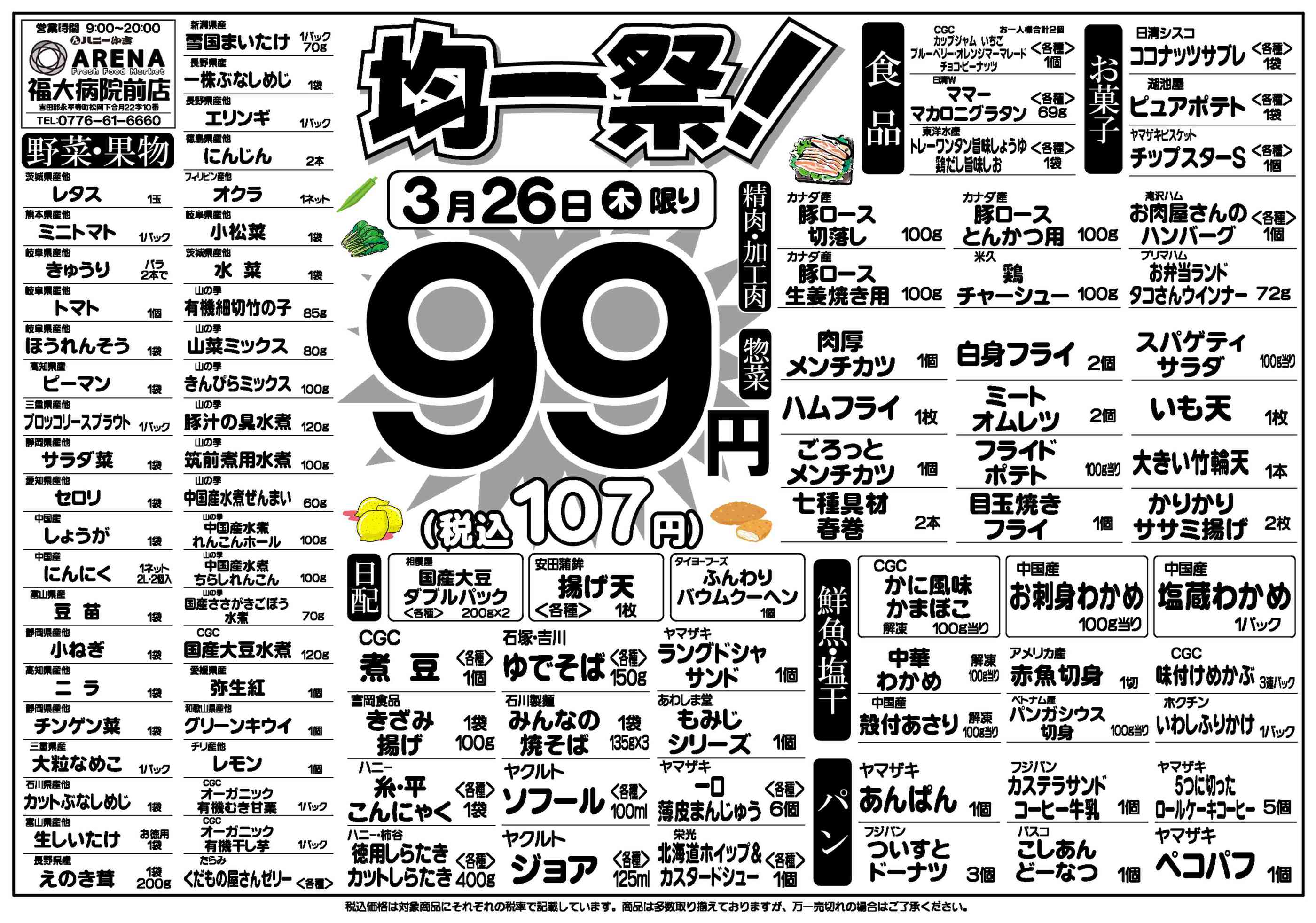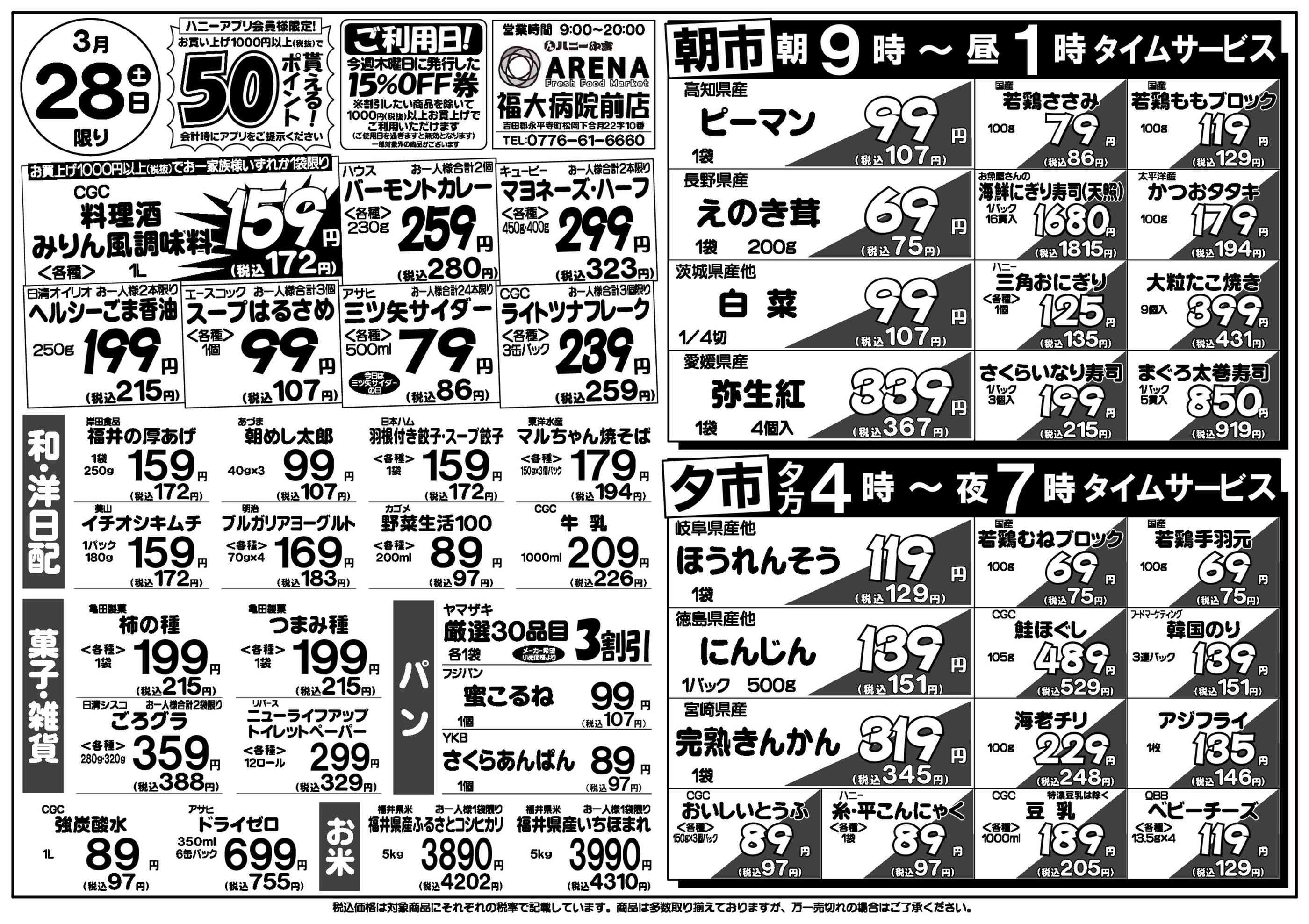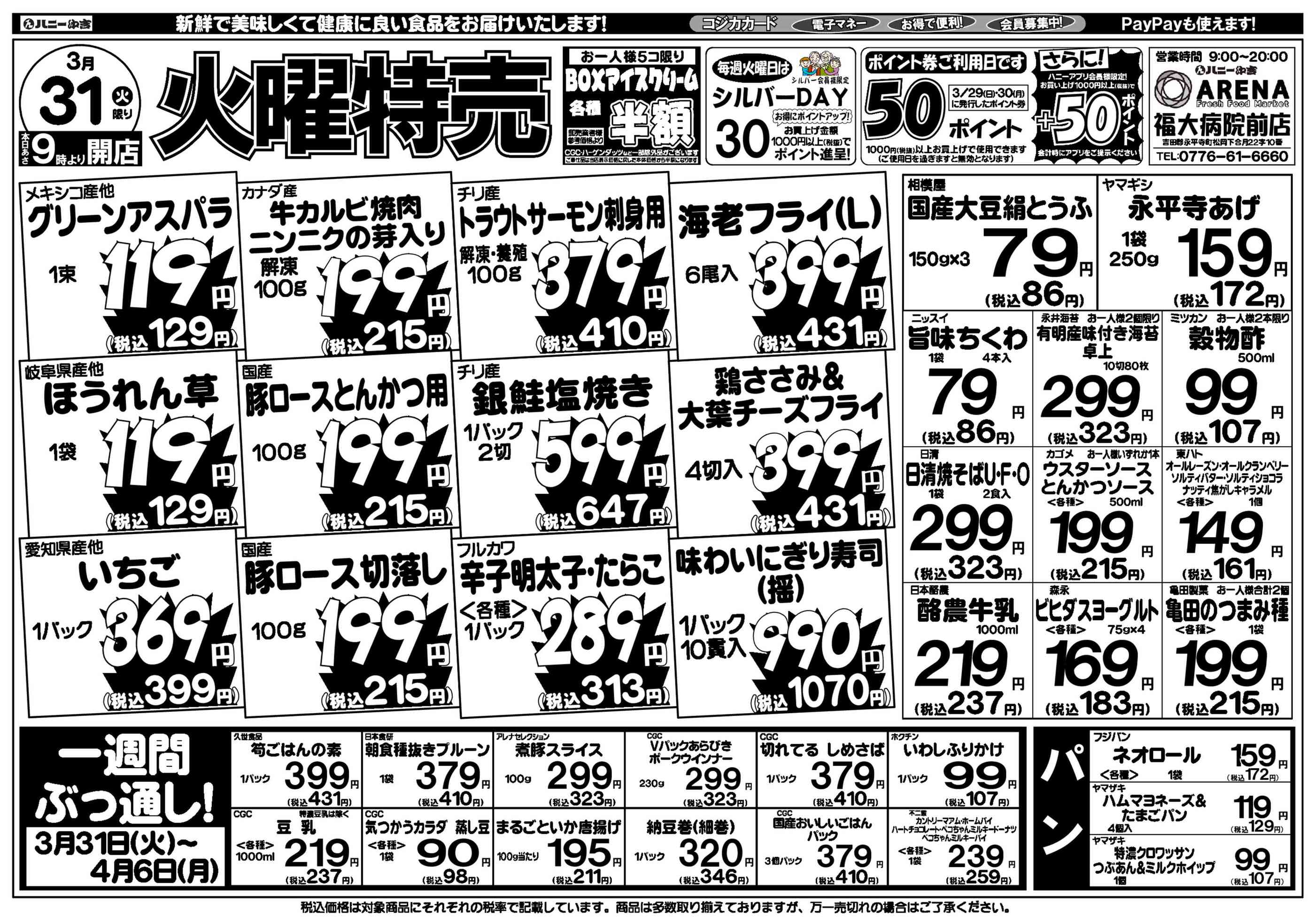 ハニーARENA福大病院前店今週のチラシ(2026年3月30日〜4月5日)