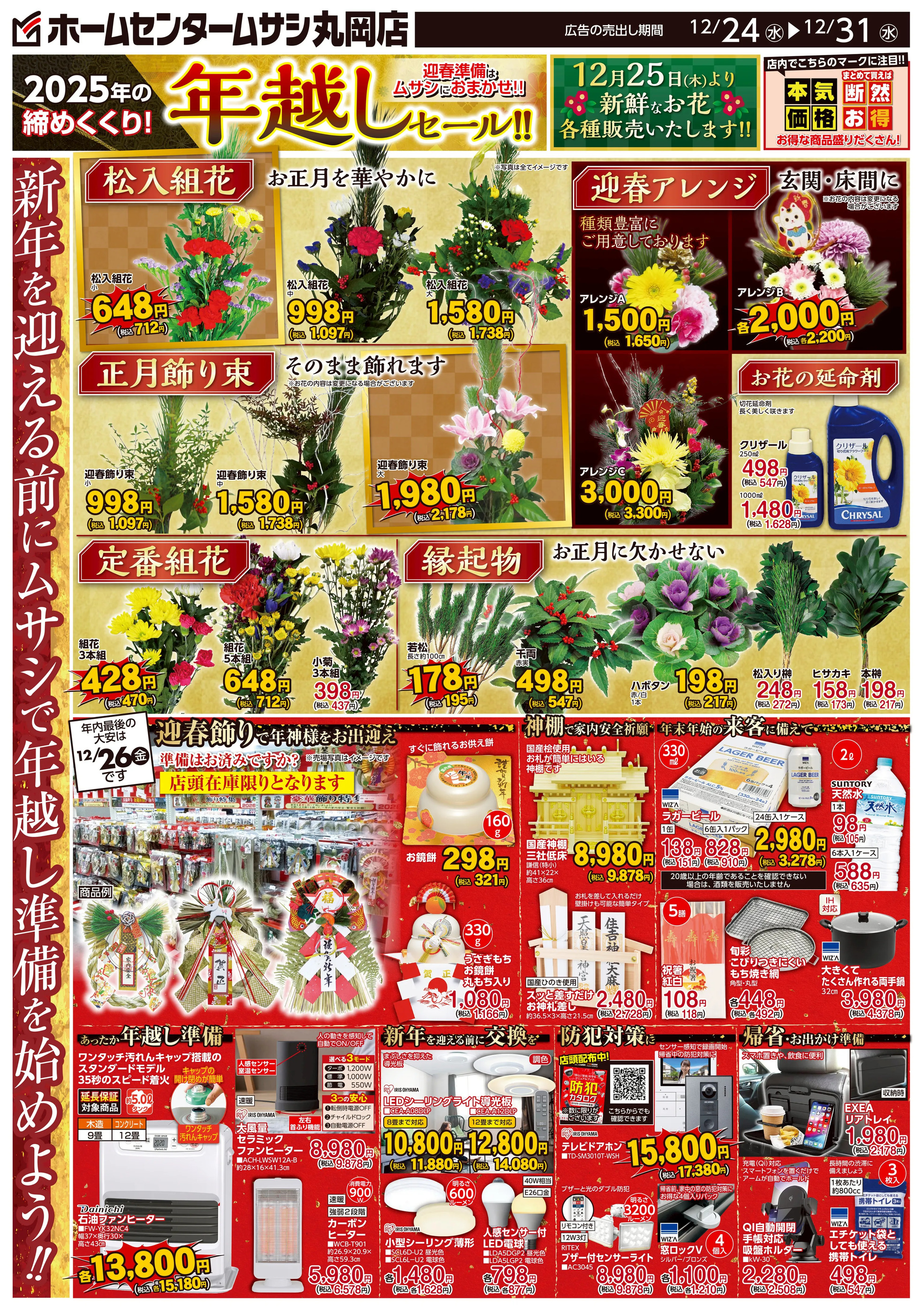 - ホームセンタームサシ丸岡店12月24日号チラシ面12月24日~12月31日 (2枚)