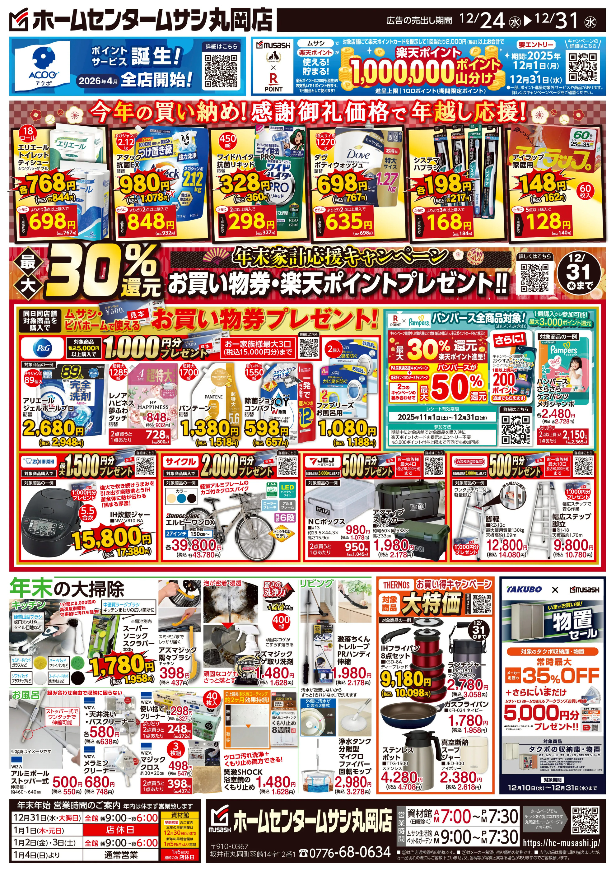ホームセンタームサシ丸岡店今週のチラシ(2025年12月29日〜1月4日)
