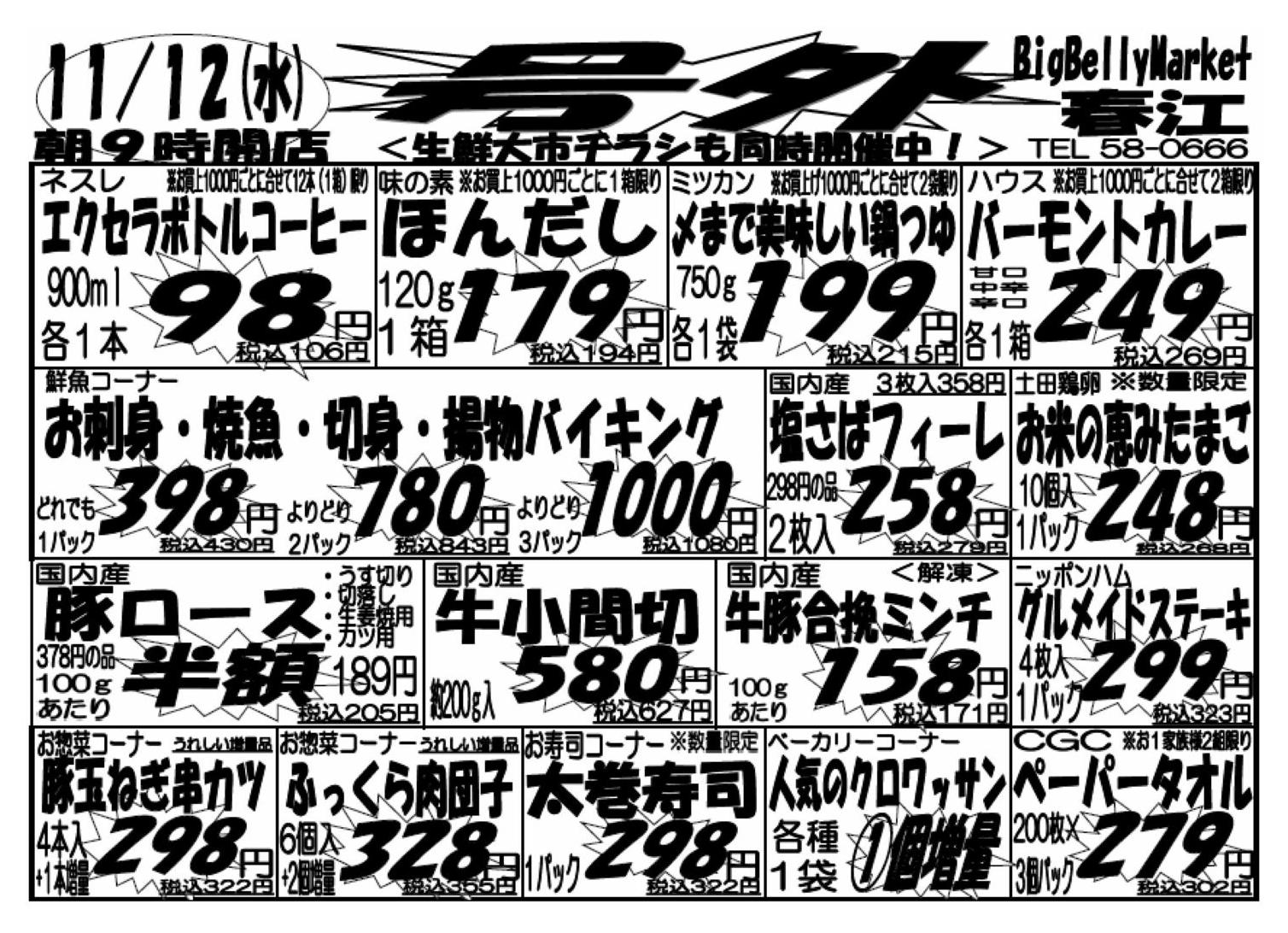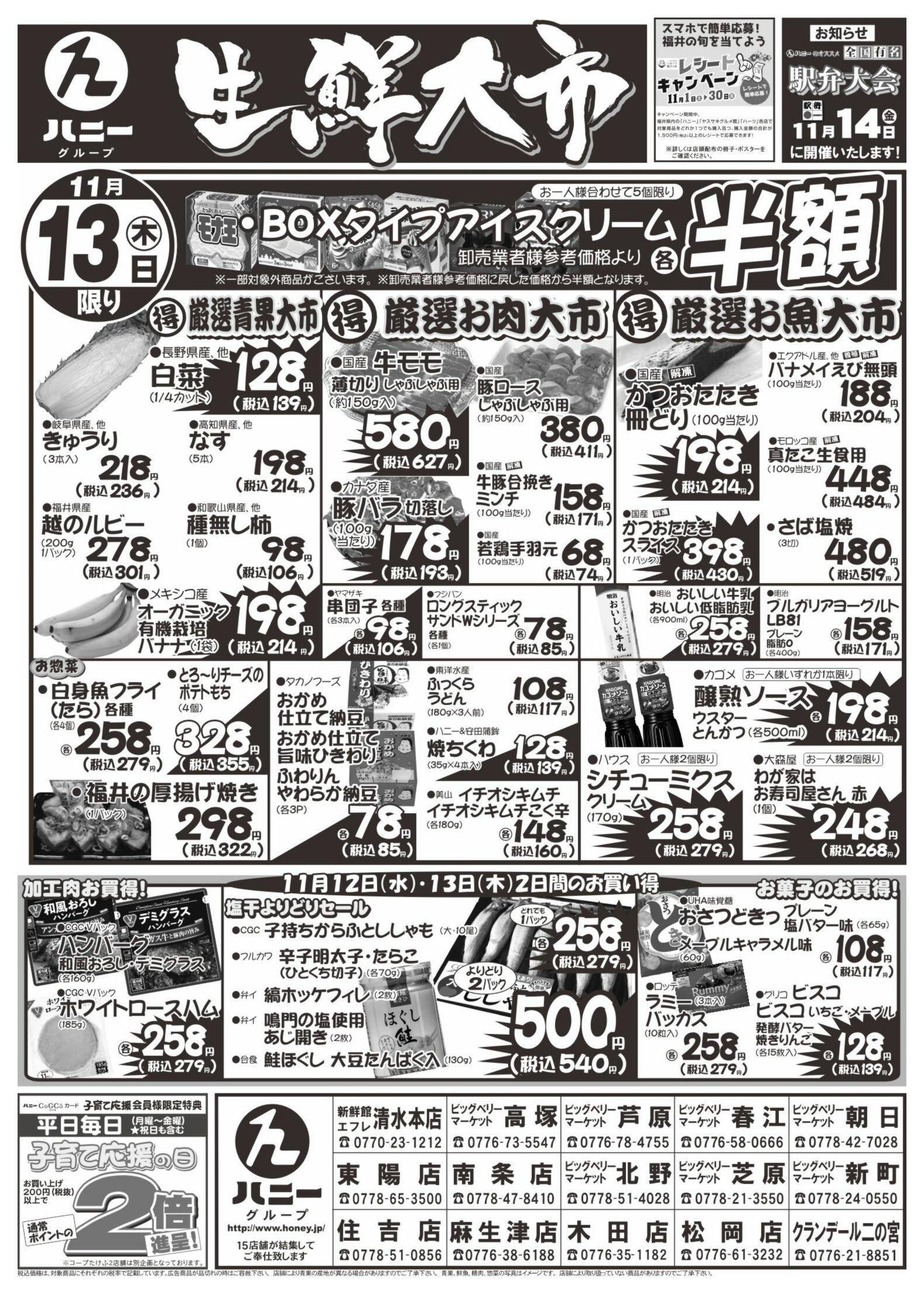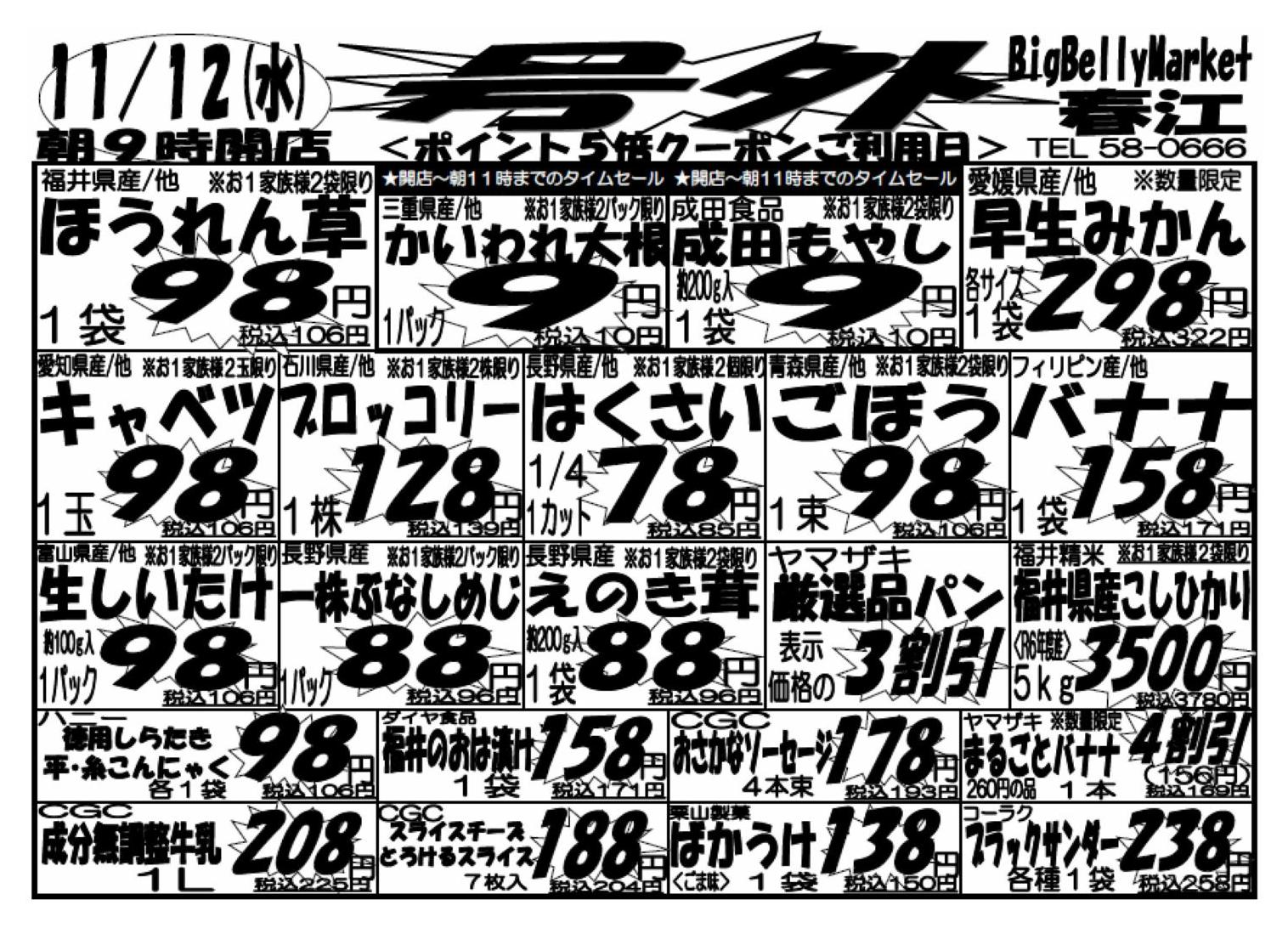 ハニービッグマート春江店今週のチラシ(2025年11月10日〜11月16日)
