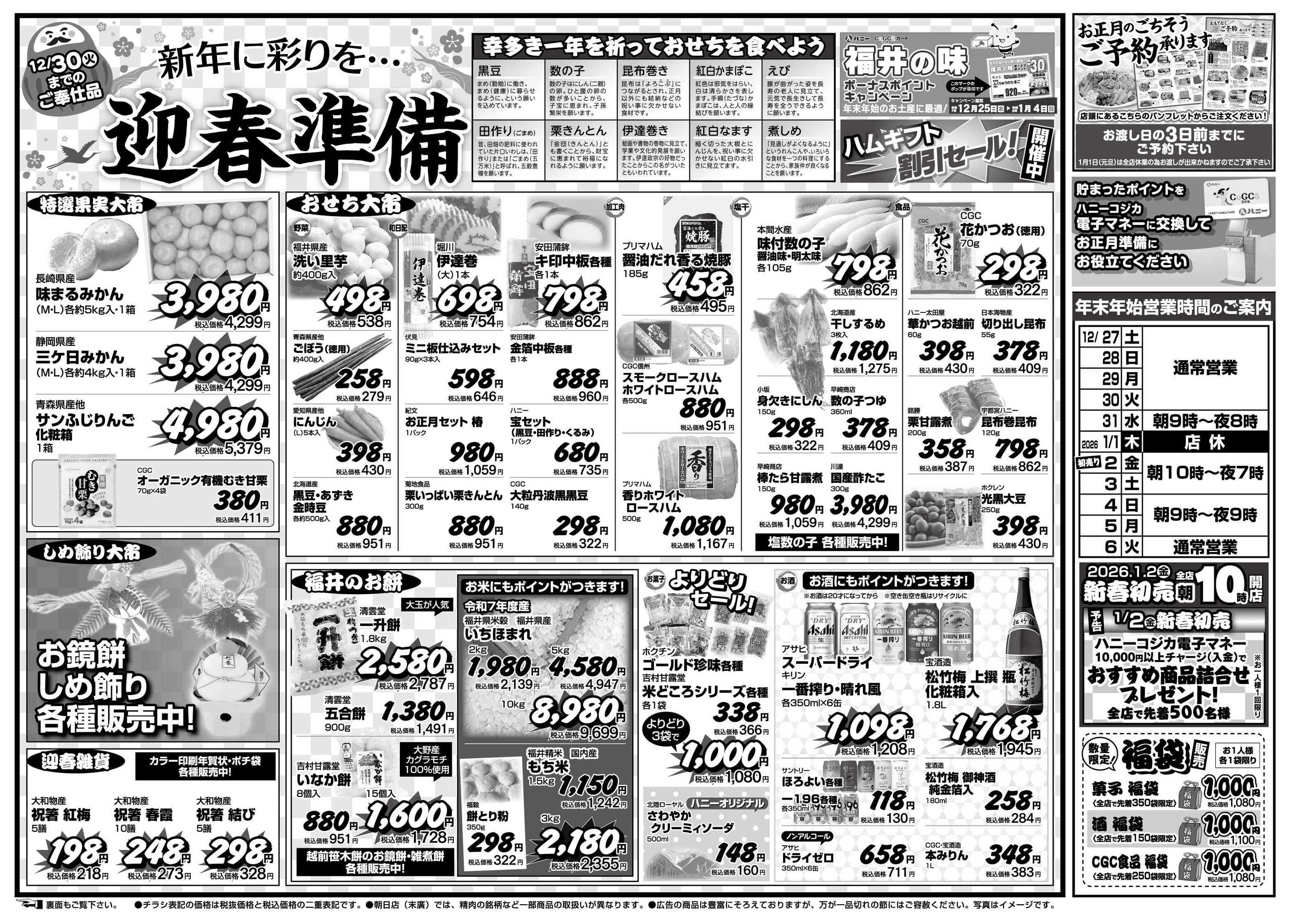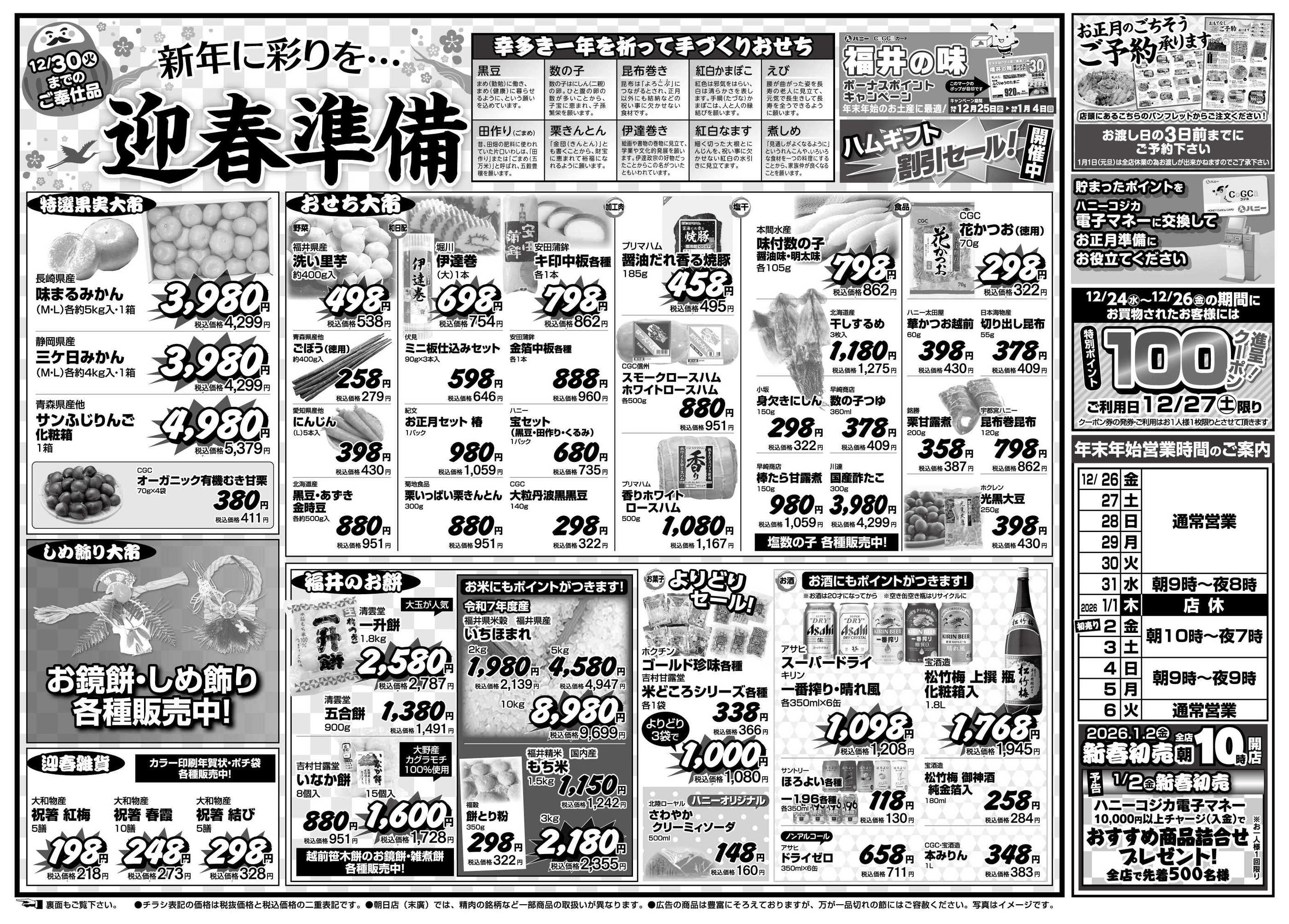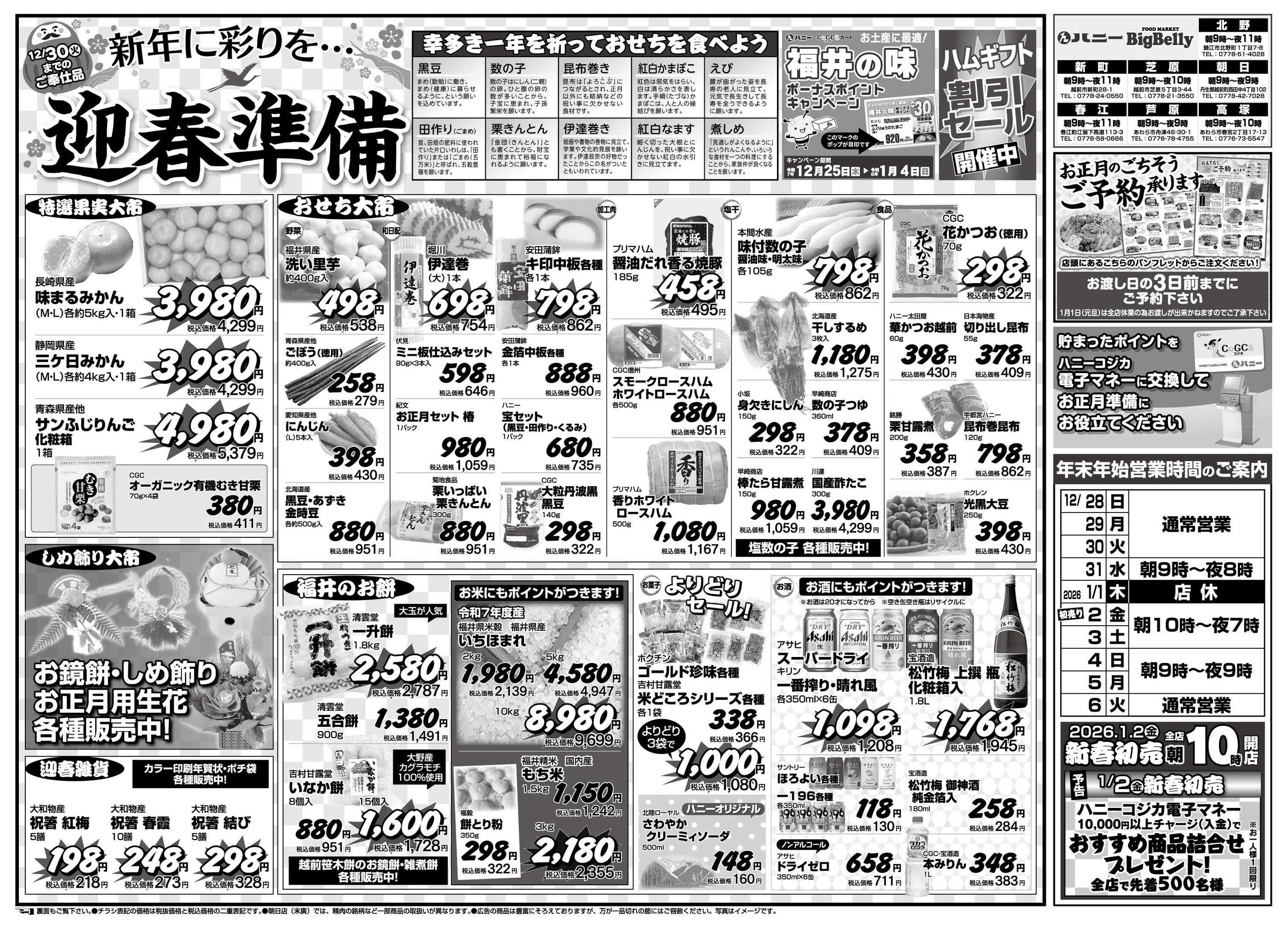 ハニービッグマート春江店今週のチラシ(2025年12月29日〜1月4日)