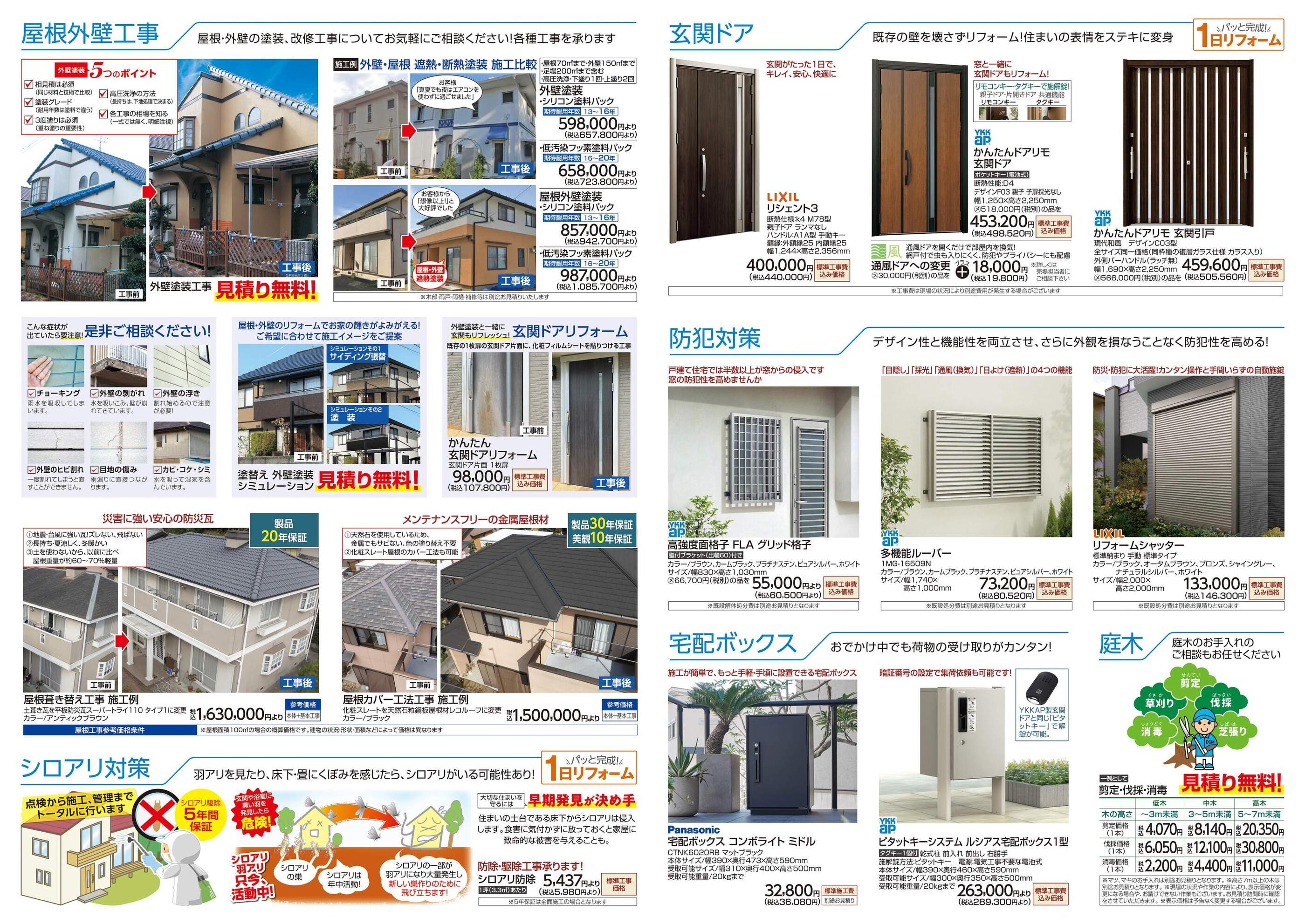 - リフォームカタログ 内窓・玄関ドア・屋根外壁塗装工事・内装工事・シロアリ工事 (3枚)