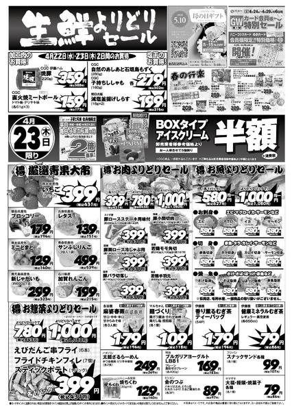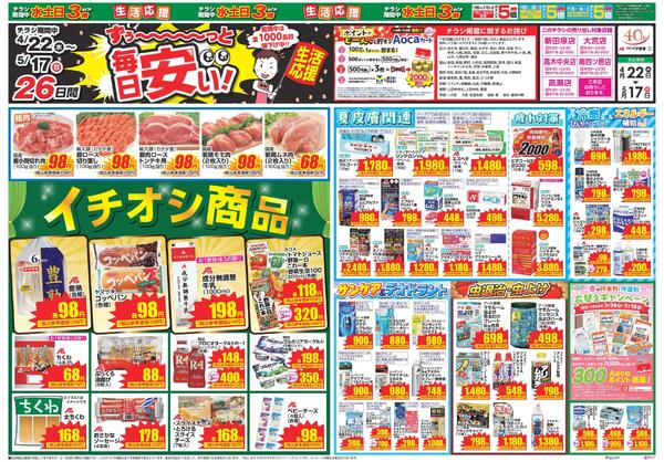 ※「店舗の掲載内容について」チラシガイドに掲載している情報は、独自に調査した内容及びユーザーから頂いた情報を掲載しています。お気づきの点がございましたら「お問い合わせ」よりご連絡ください。また店舗の営業状況、商品に関するお問い合わせは直接店舗事業者にご確認ください。