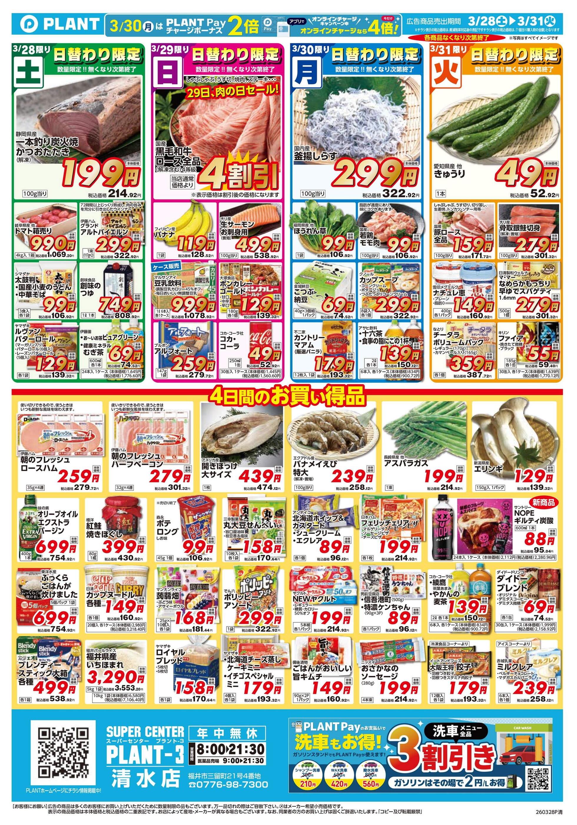 PLANT-3清水店今週のチラシ(2026年3月30日〜4月5日)