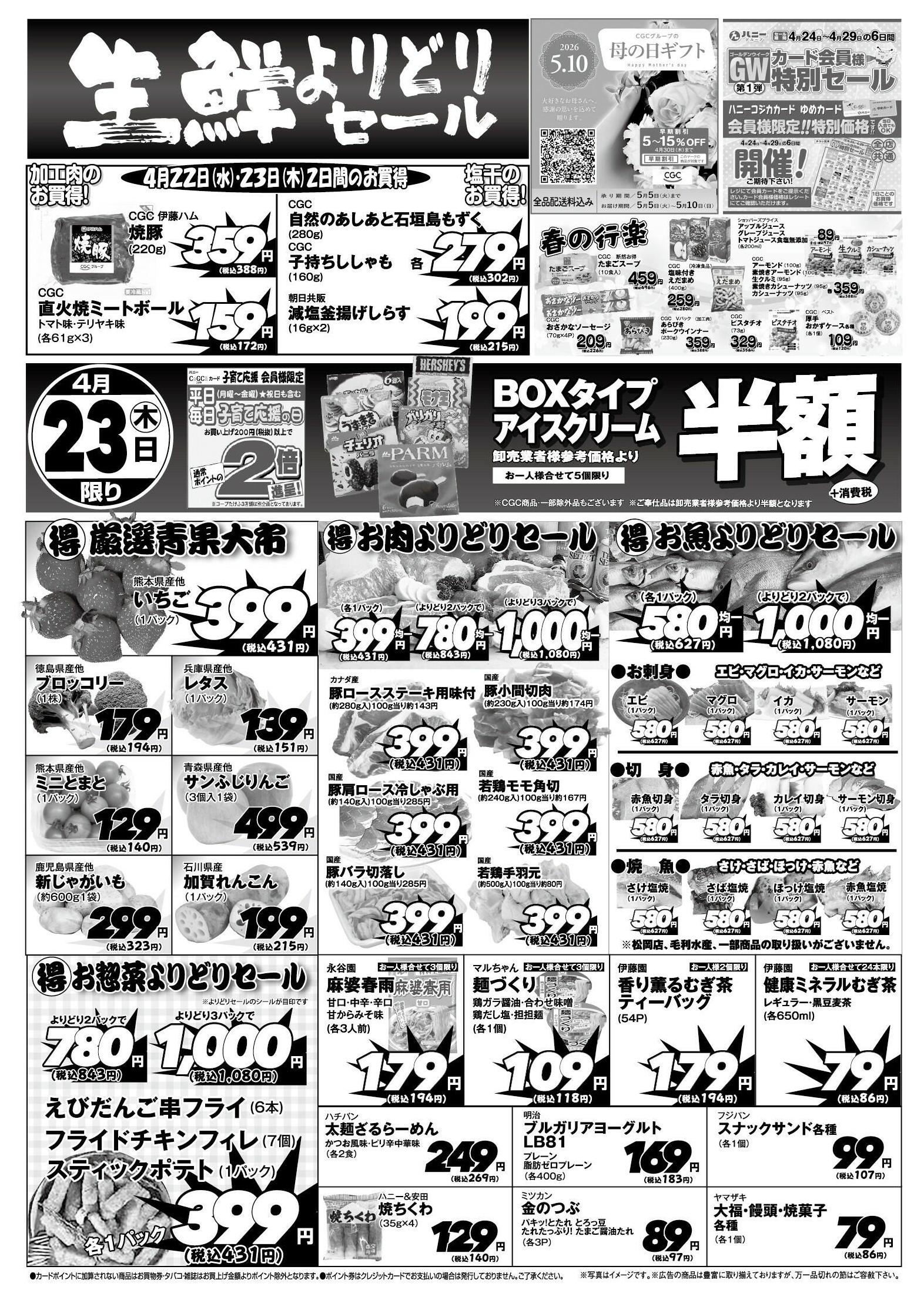 ハニー木田店今週のチラシ(2026年4月20日〜4月26日)