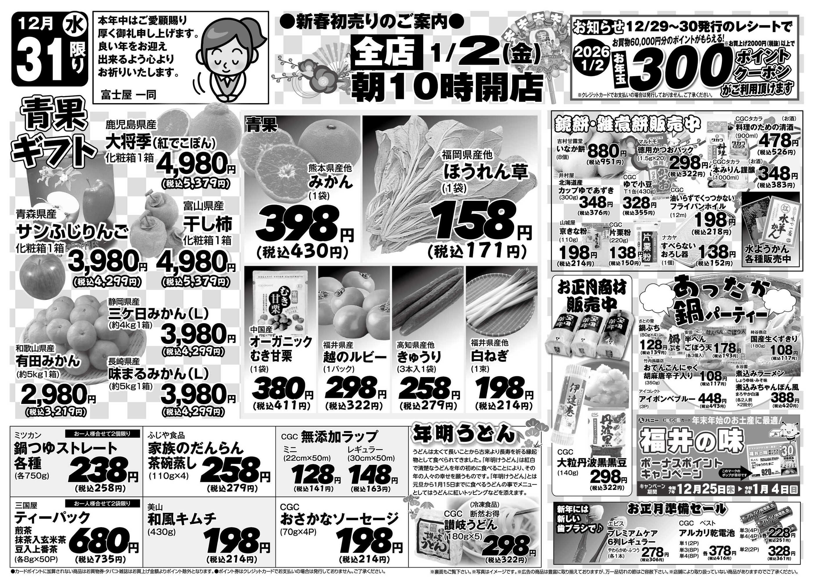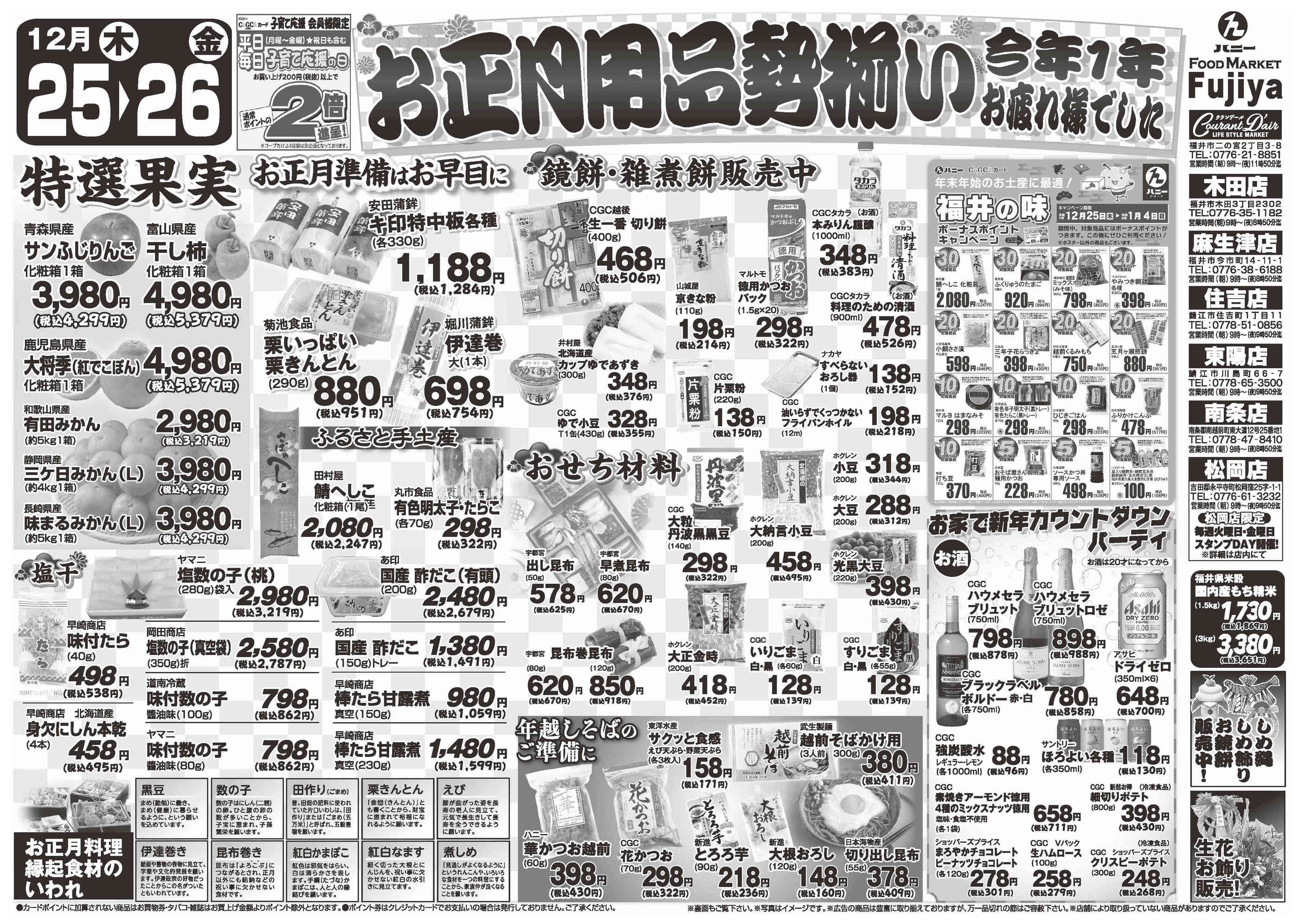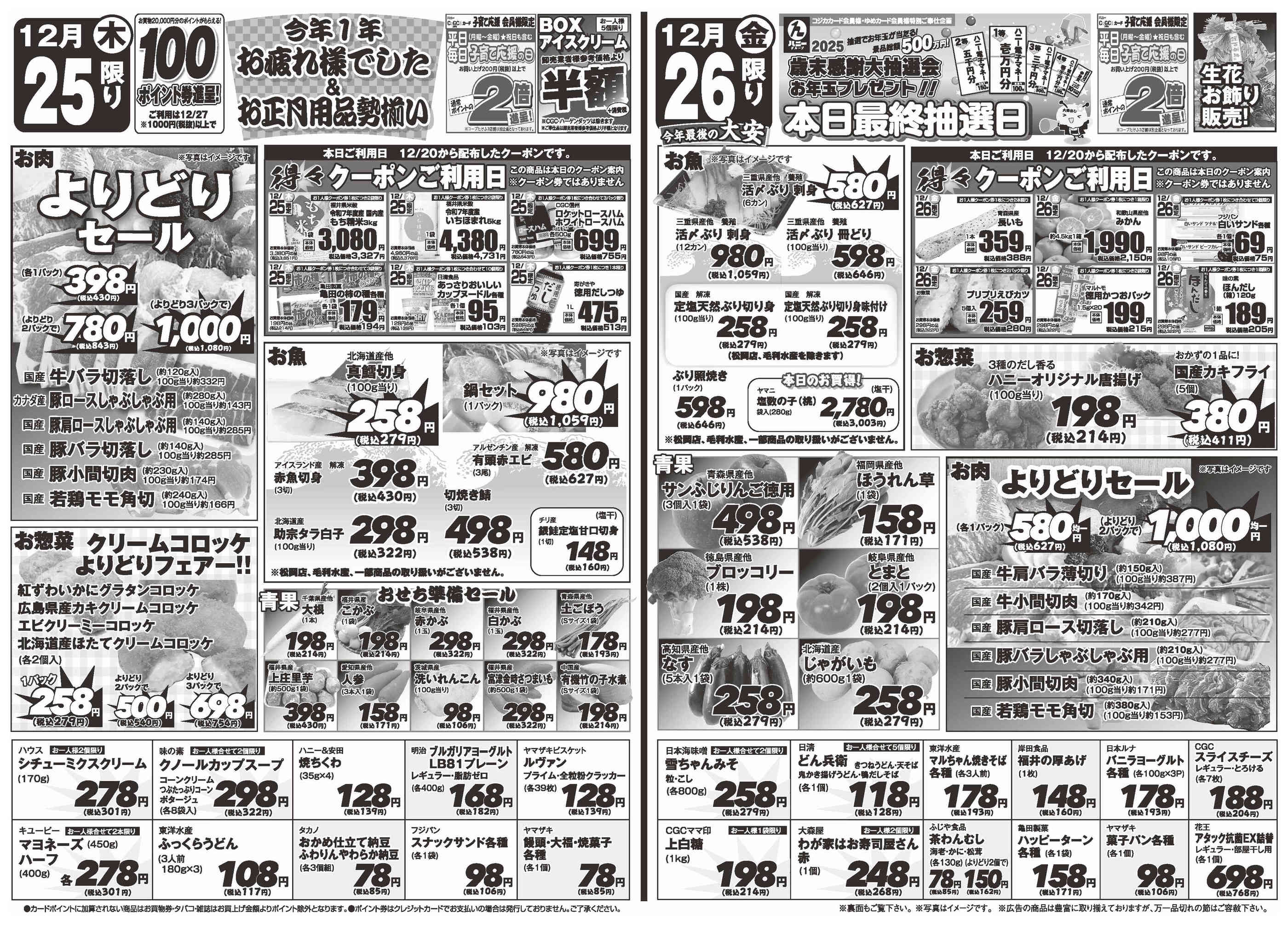 ハニー麻生津店今週のチラシ(2025年12月29日〜1月4日)