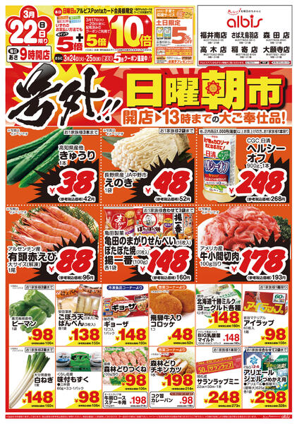 ※「店舗の掲載内容について」チラシガイドに掲載している情報は、独自に調査した内容及びユーザーから頂いた情報を掲載しています。お気づきの点がございましたら「お問い合わせ」よりご連絡ください。また店舗の営業状況、商品に関するお問い合わせは直接店舗事業者にご確認ください。
