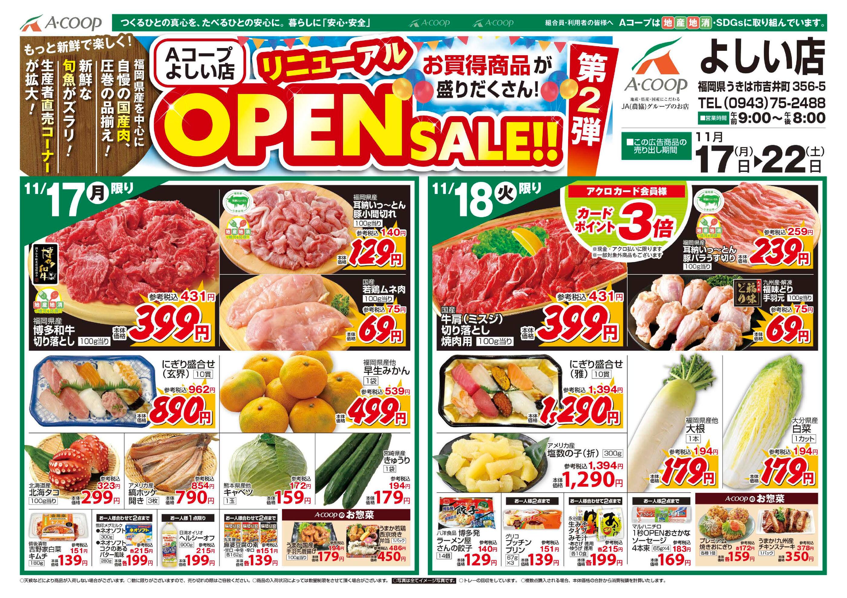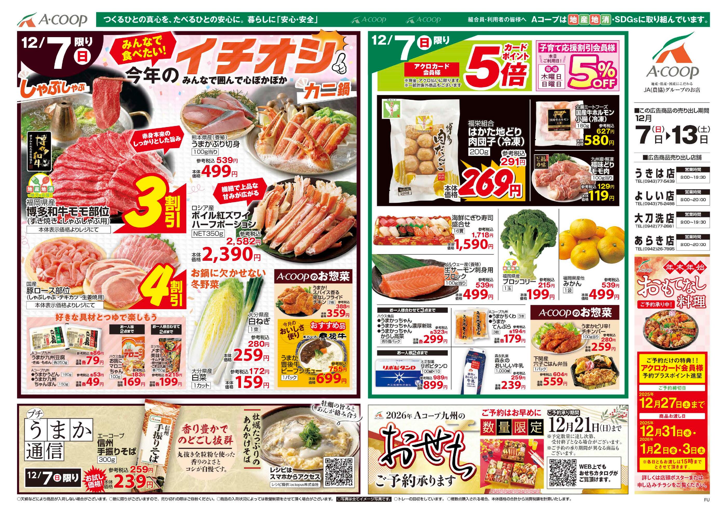 Aコープ よしい店今週のチラシ(2025年12月8日〜12月14日)
