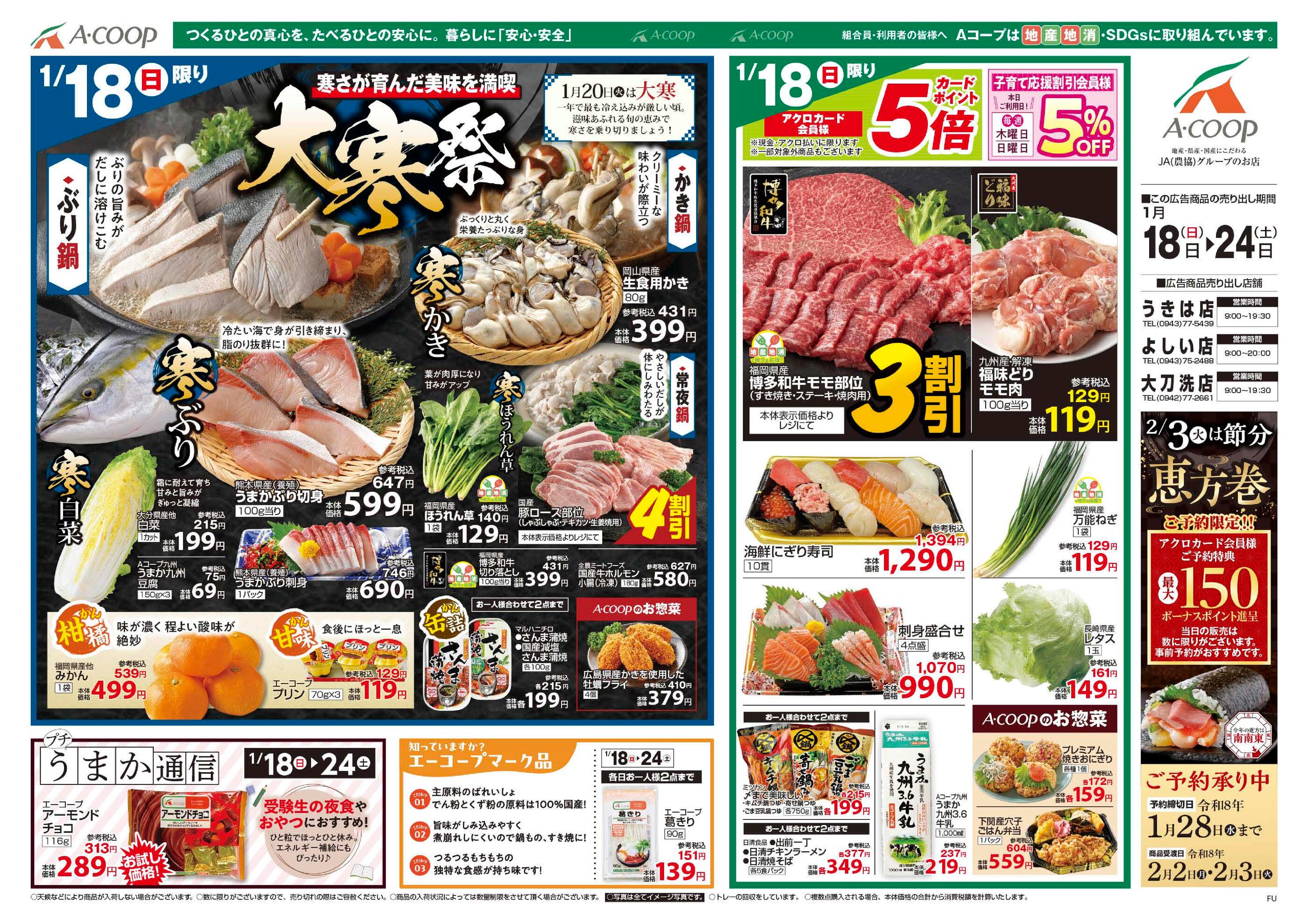 Aコープ よしい店今週のチラシ(2026年1月19日〜1月25日)