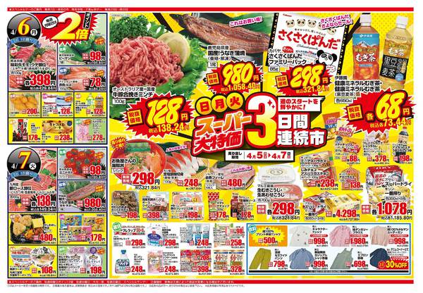 特売やセール情報など最新のチラシを掲載中。(1種類、2枚のチラシを掲載しています)