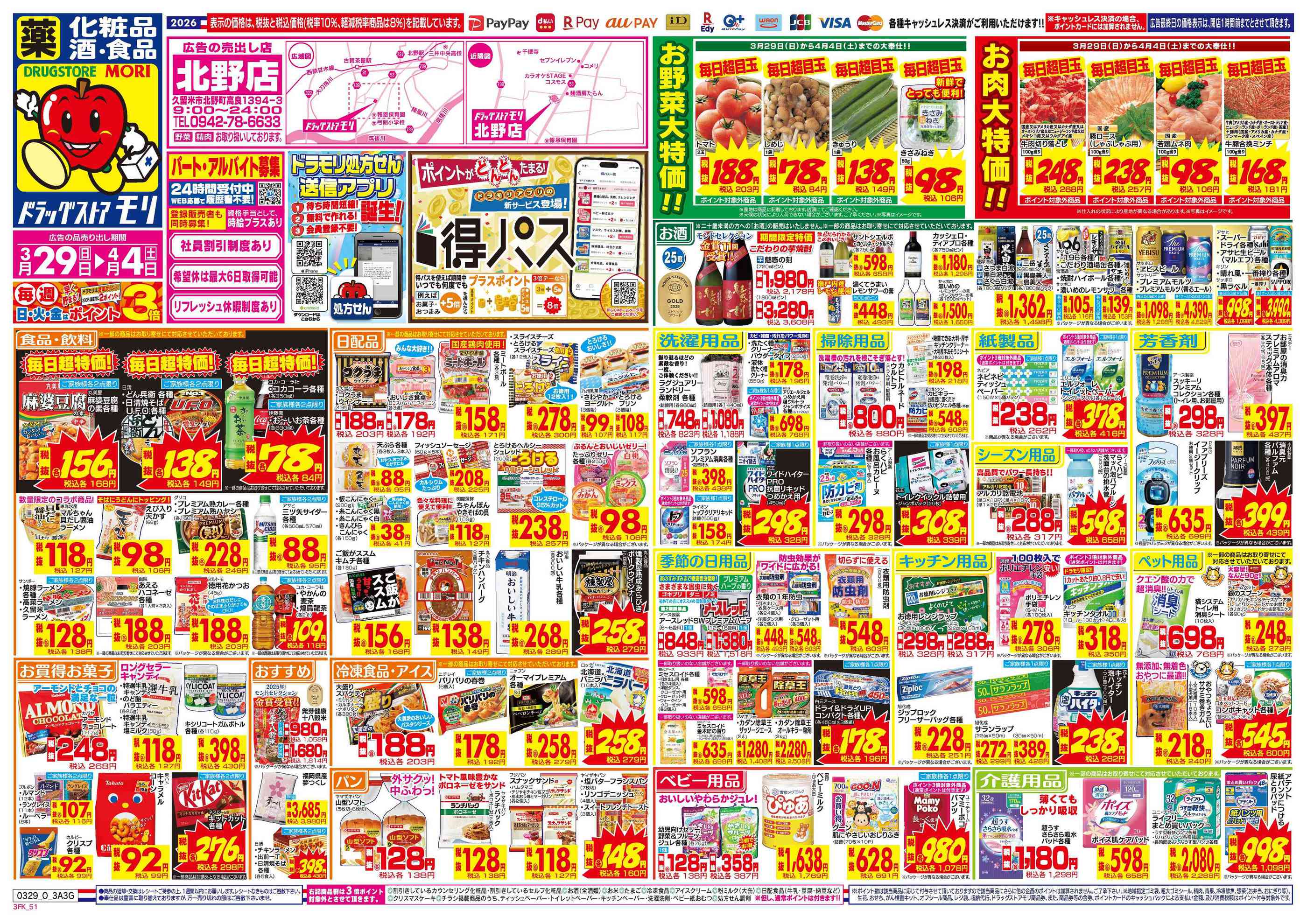 ドラッグストアモリ北野店今週のチラシ(2026年3月30日〜4月5日)