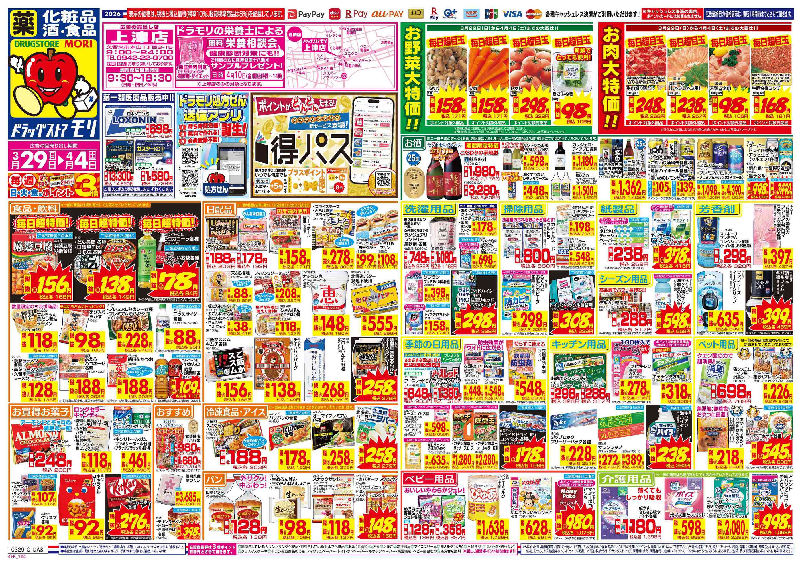ドラッグストアモリ上津店今週のチラシ(2026年3月30日〜4月5日)