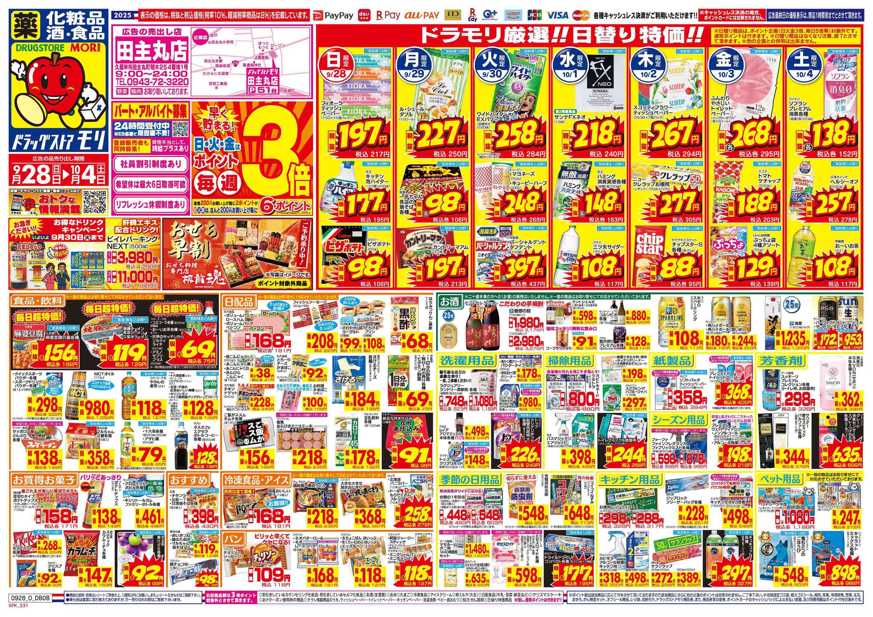 ドラッグストアモリ田主丸店2025-09-28更新