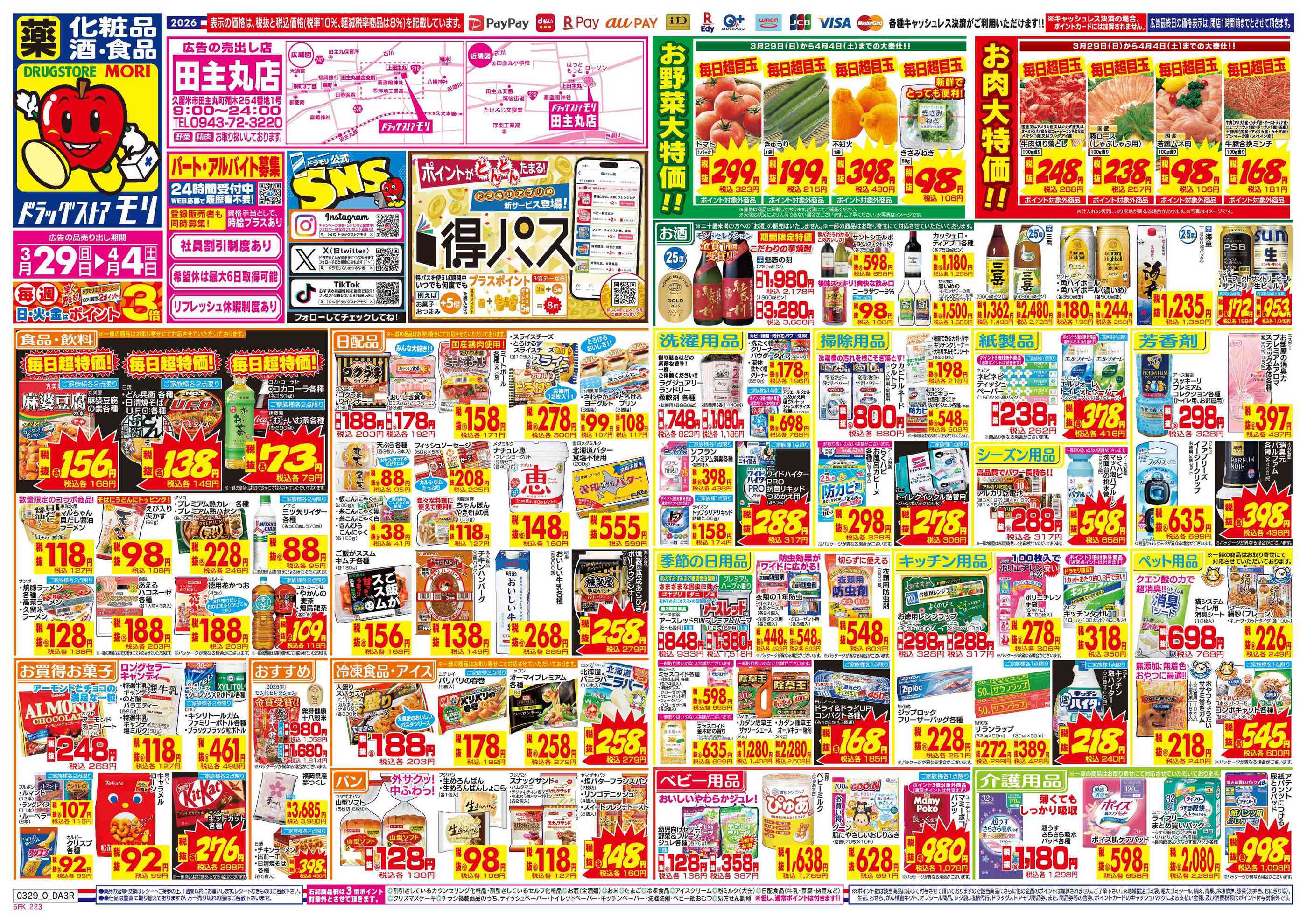 ドラッグストアモリ田主丸店今週のチラシ(2026年3月30日〜4月5日)