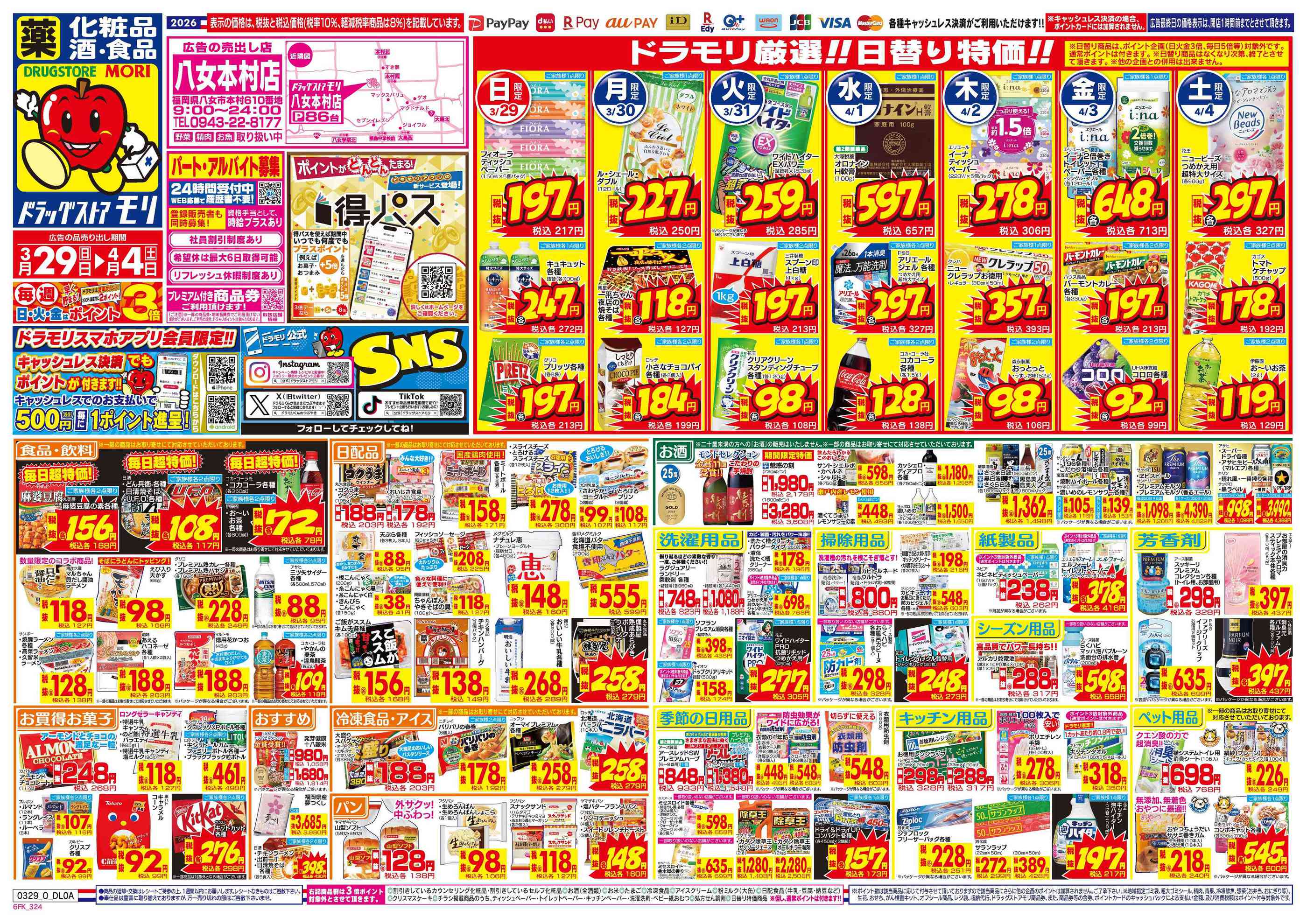 ドラッグストアモリ八女本村店今週のチラシ(2026年3月30日〜4月5日)
