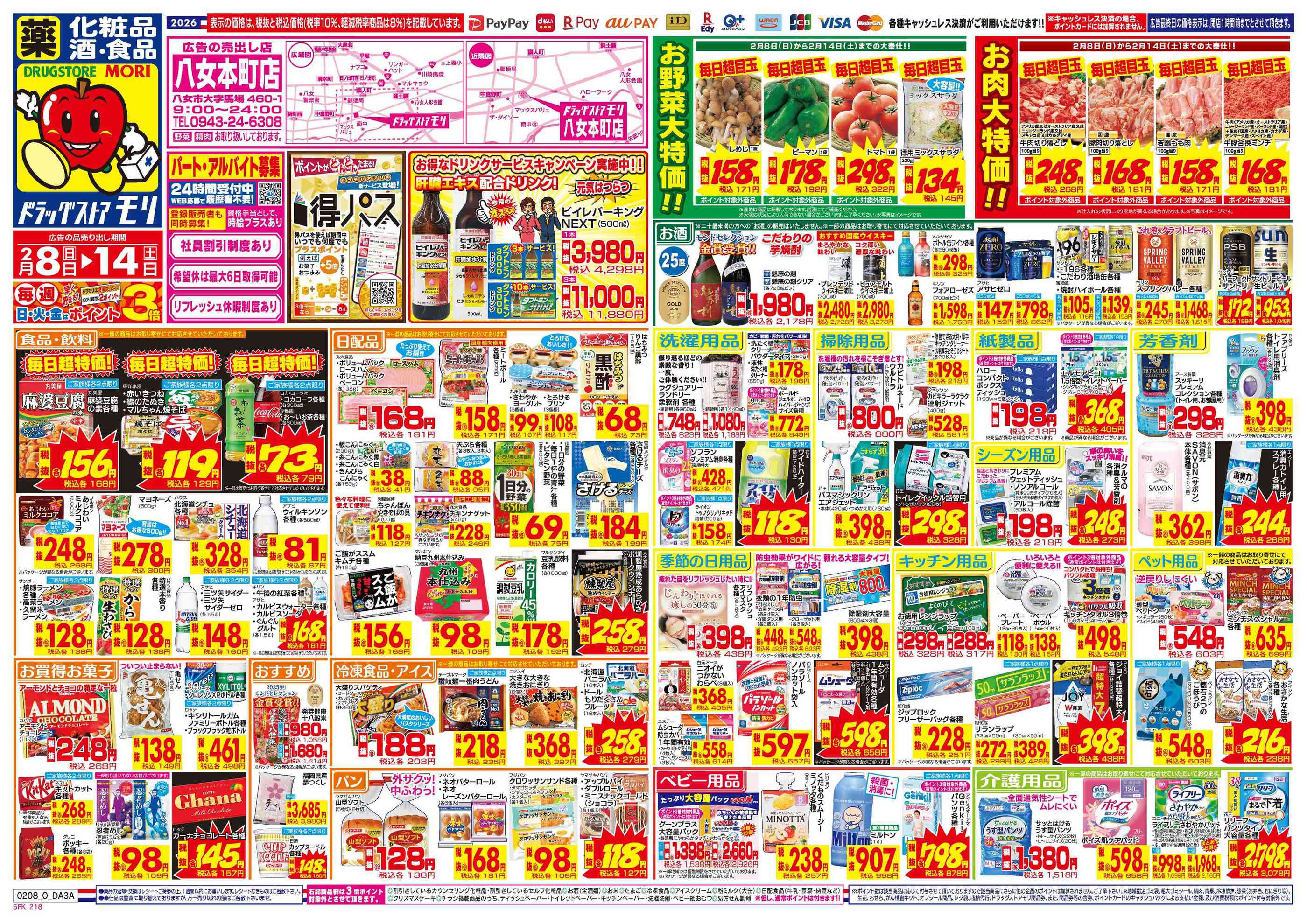 ドラッグストアモリ八女本町店今週のチラシ(2026年2月16日〜2月22日)