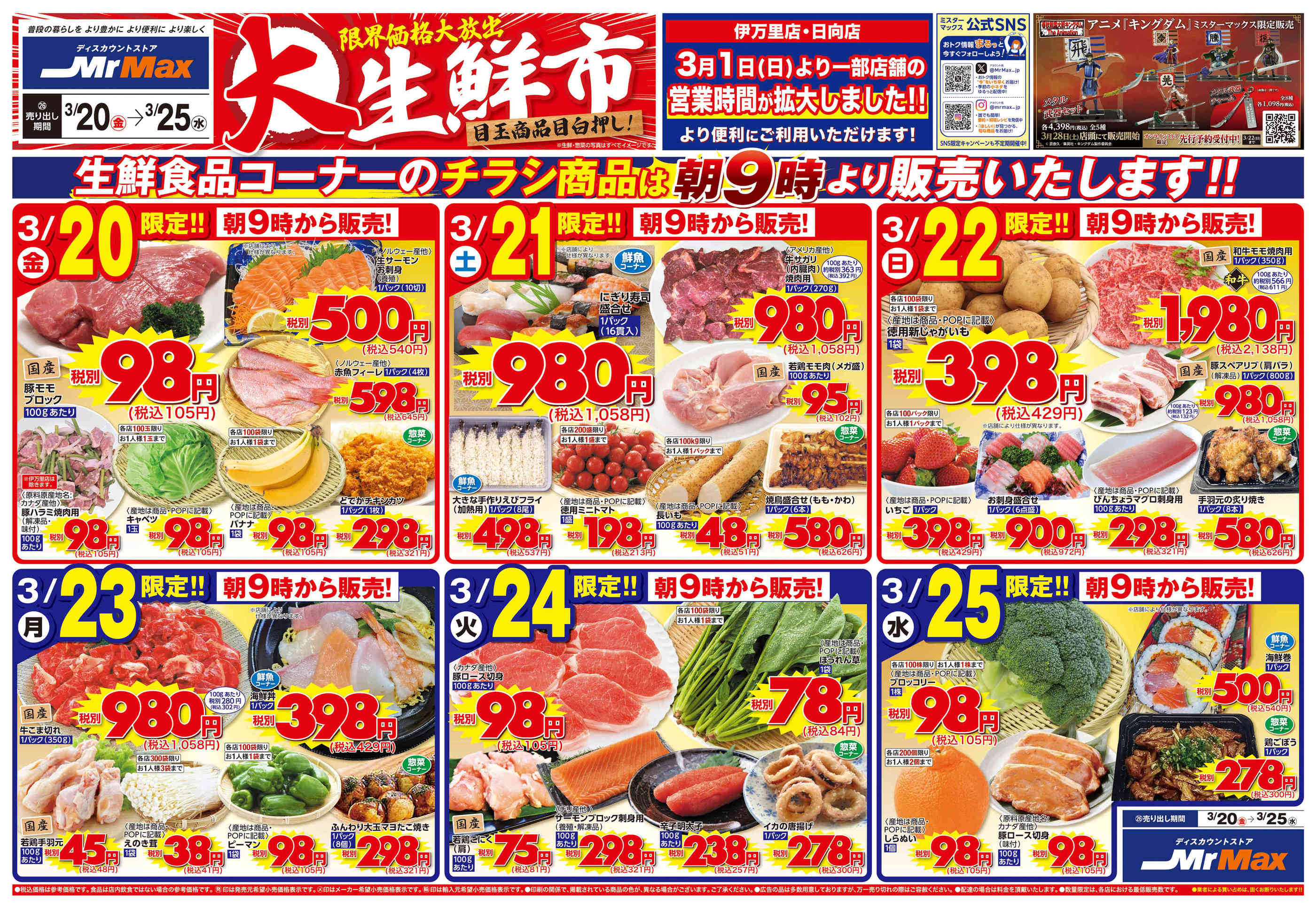 ミスターマックス八幡東店今週のチラシ(2026年3月30日〜4月5日)