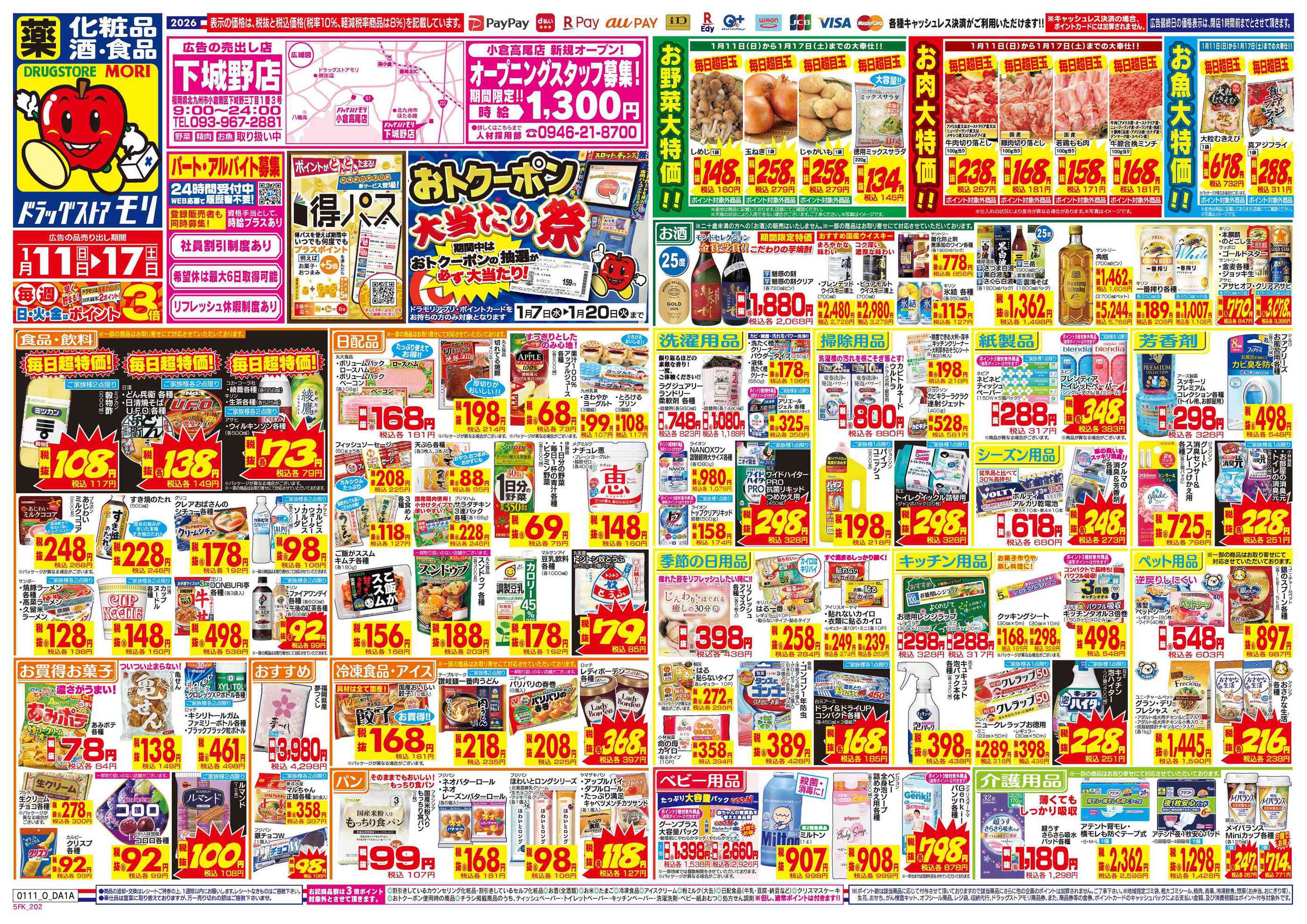 ドラッグストアモリ下城野店今週のチラシ(2026年1月12日〜1月18日)