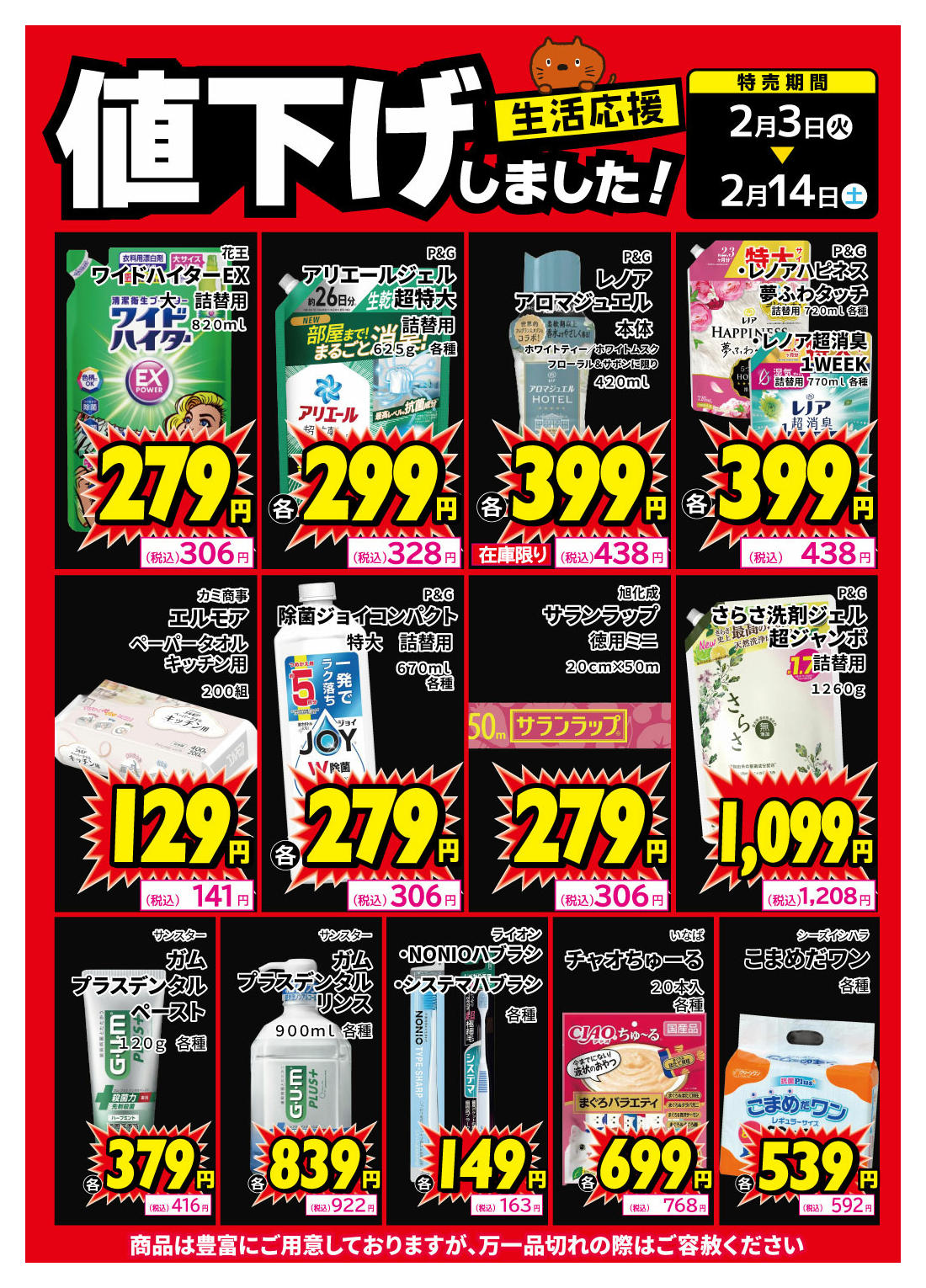 ※「店舗の掲載内容について」チラシガイドに掲載している情報は、独自に調査した内容及びユーザーから頂いた情報を掲載しています。お気づきの点がございましたら「お問い合わせ」よりご連絡ください。また店舗の営業状況、商品に関するお問い合わせは直接店舗事業者にご確認ください。
