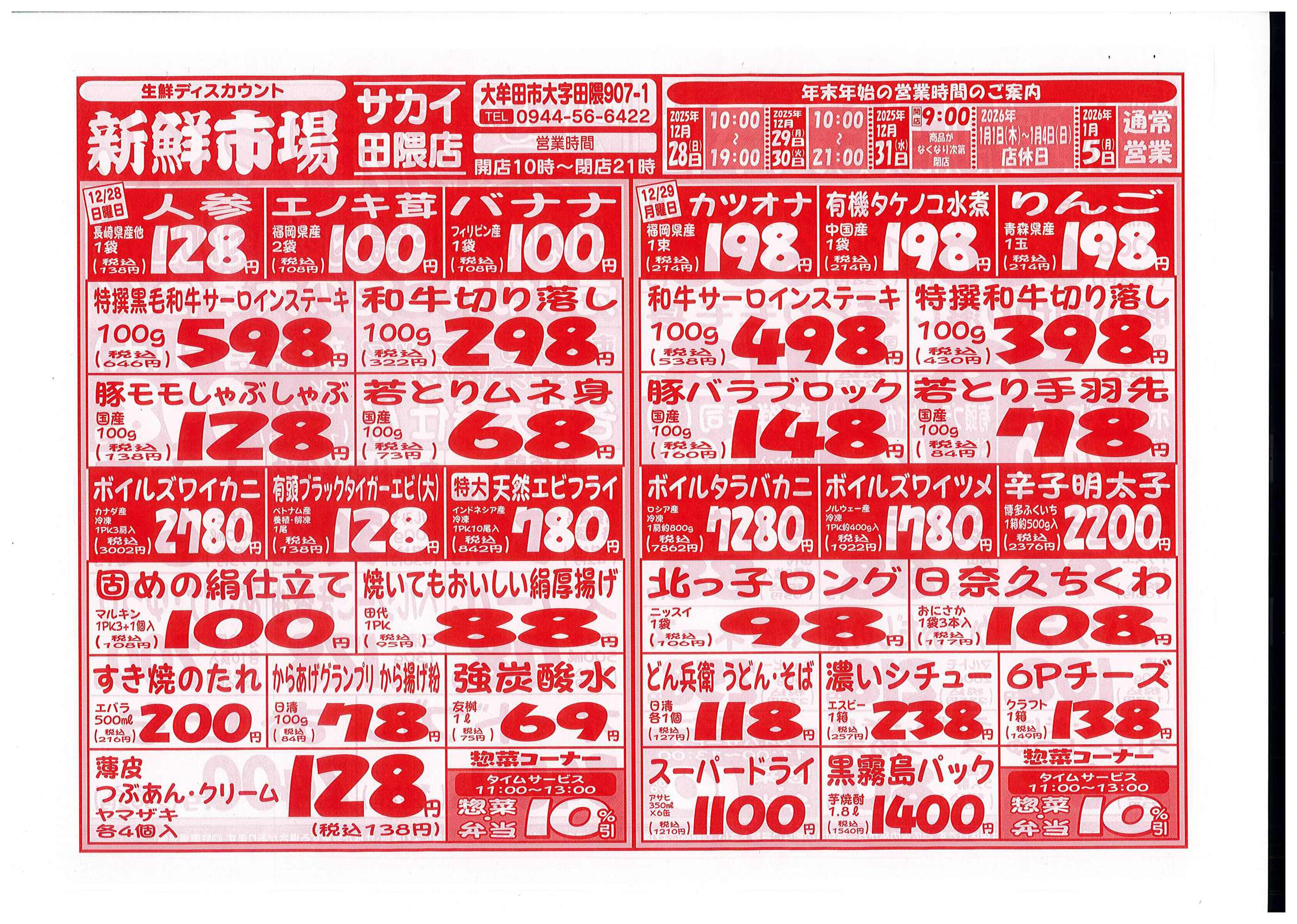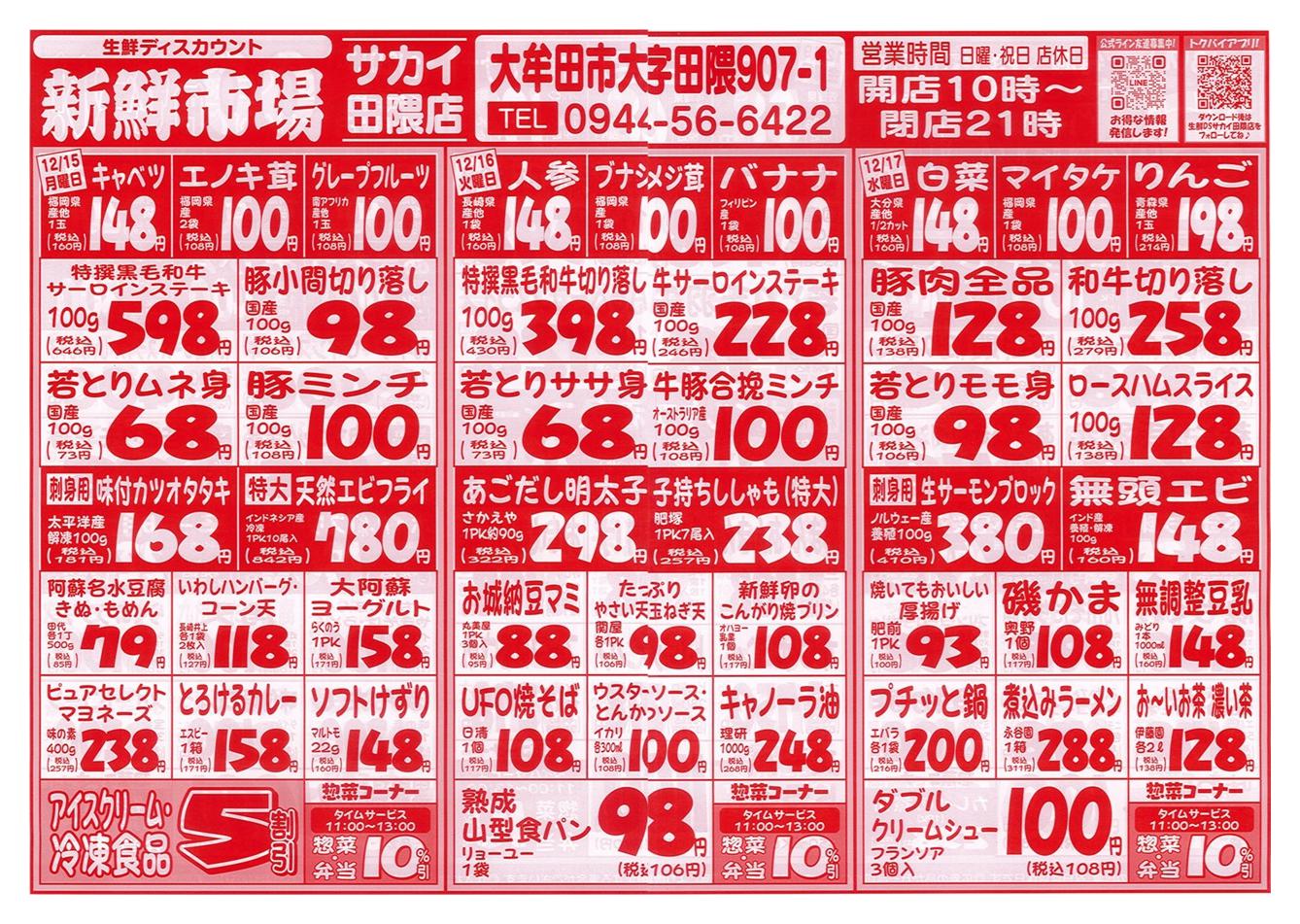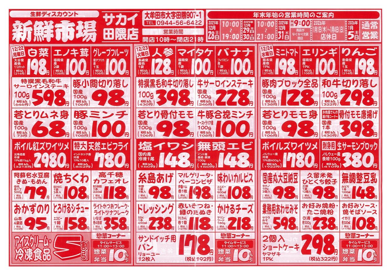 新鮮市場サカイ田隈本店2025-12-28更新