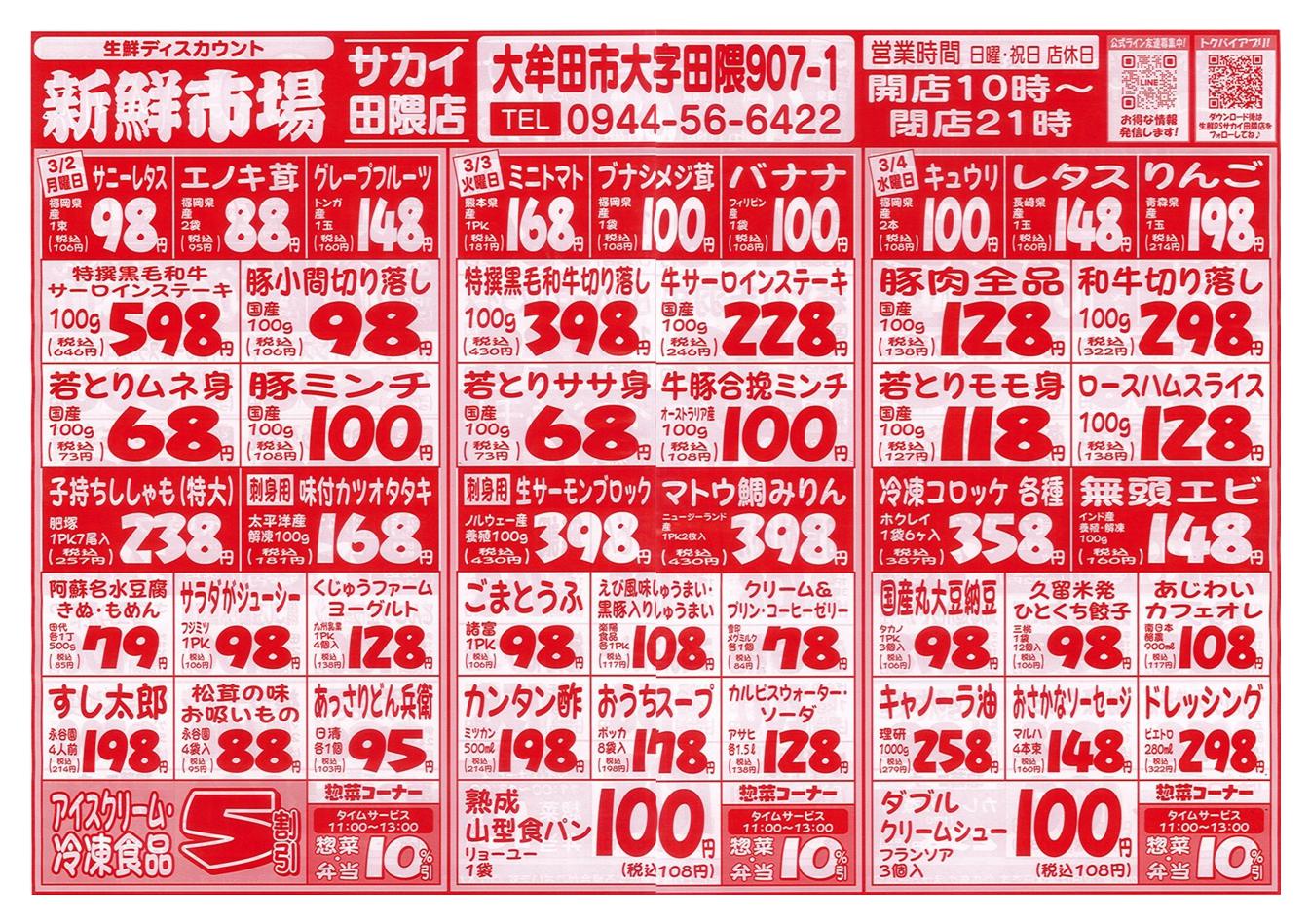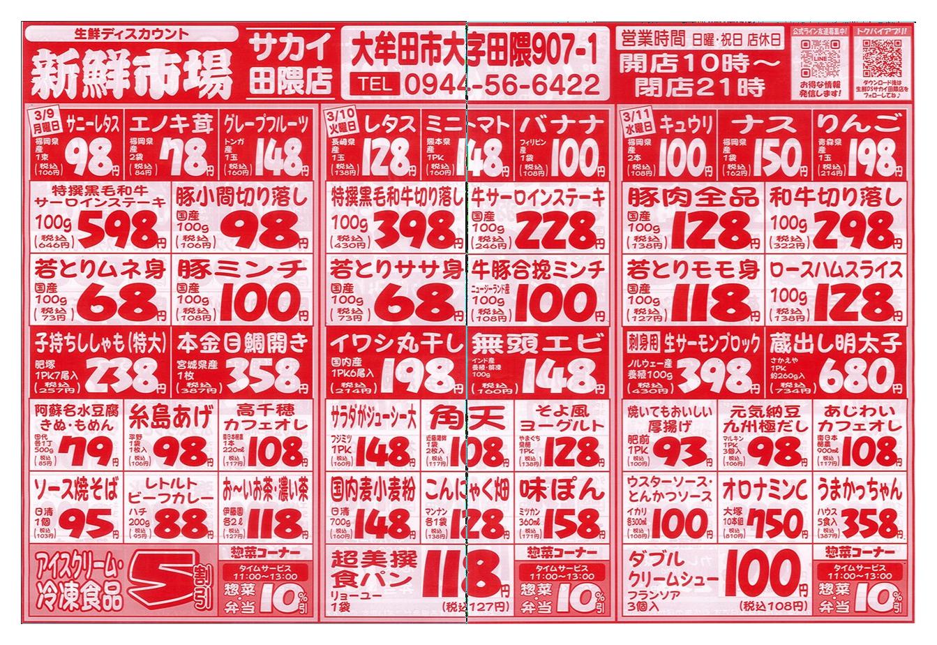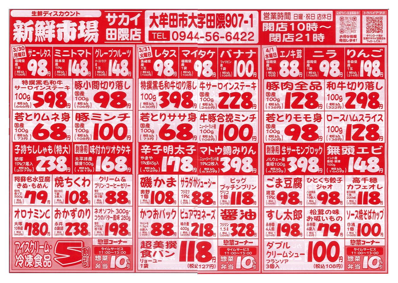 新鮮市場サカイ田隈本店今週のチラシ(2026年3月30日〜4月5日)