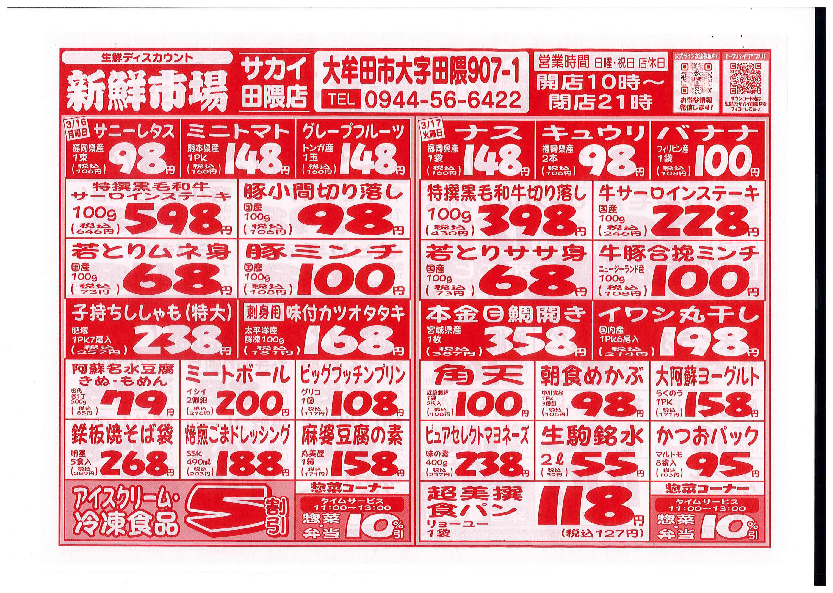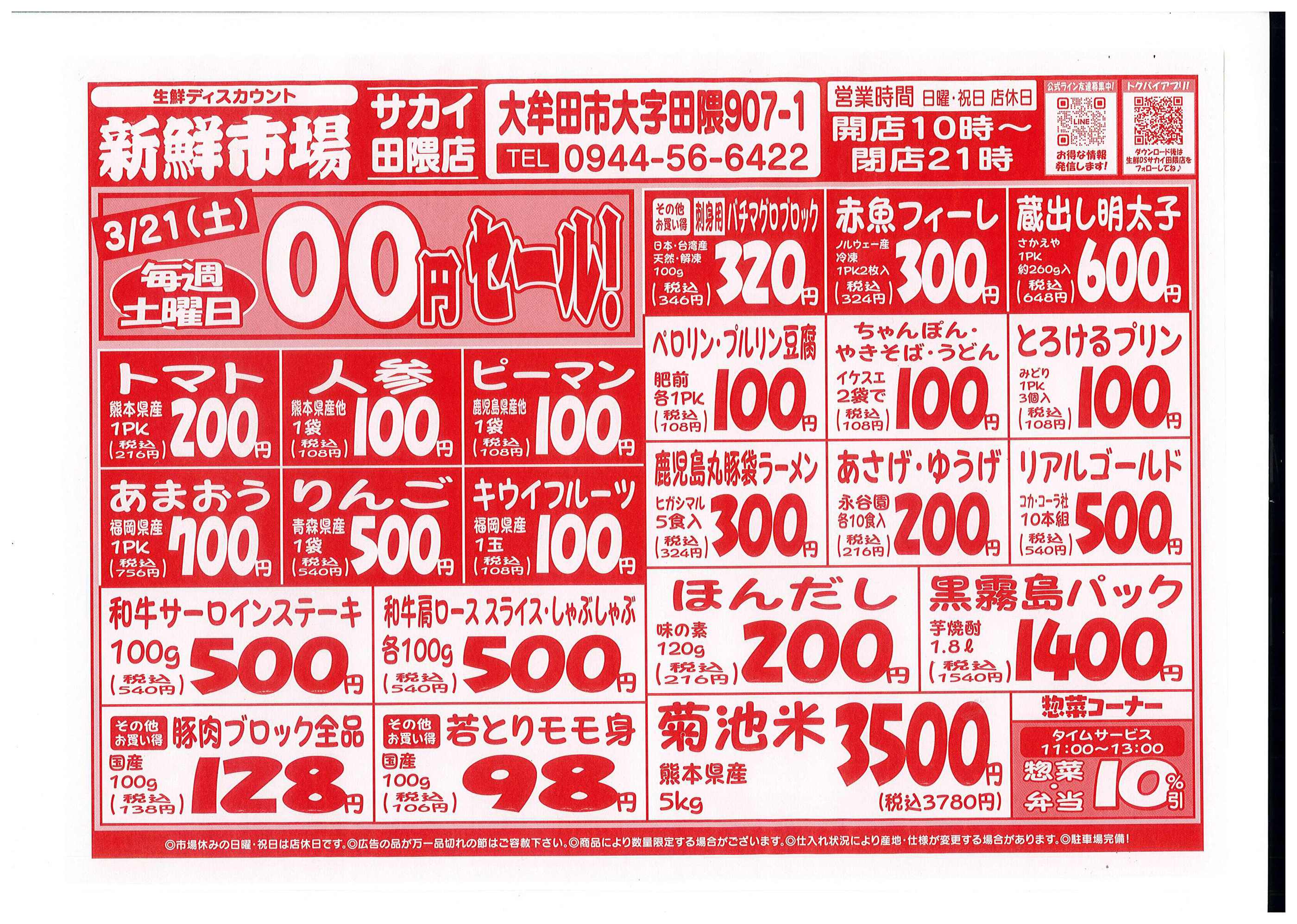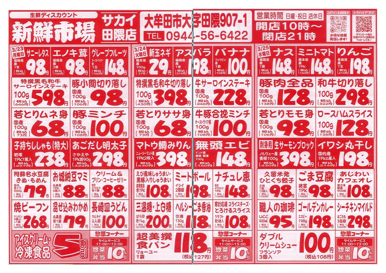 新鮮市場サカイ田隈本店今週のチラシ(2026年3月30日〜4月5日)