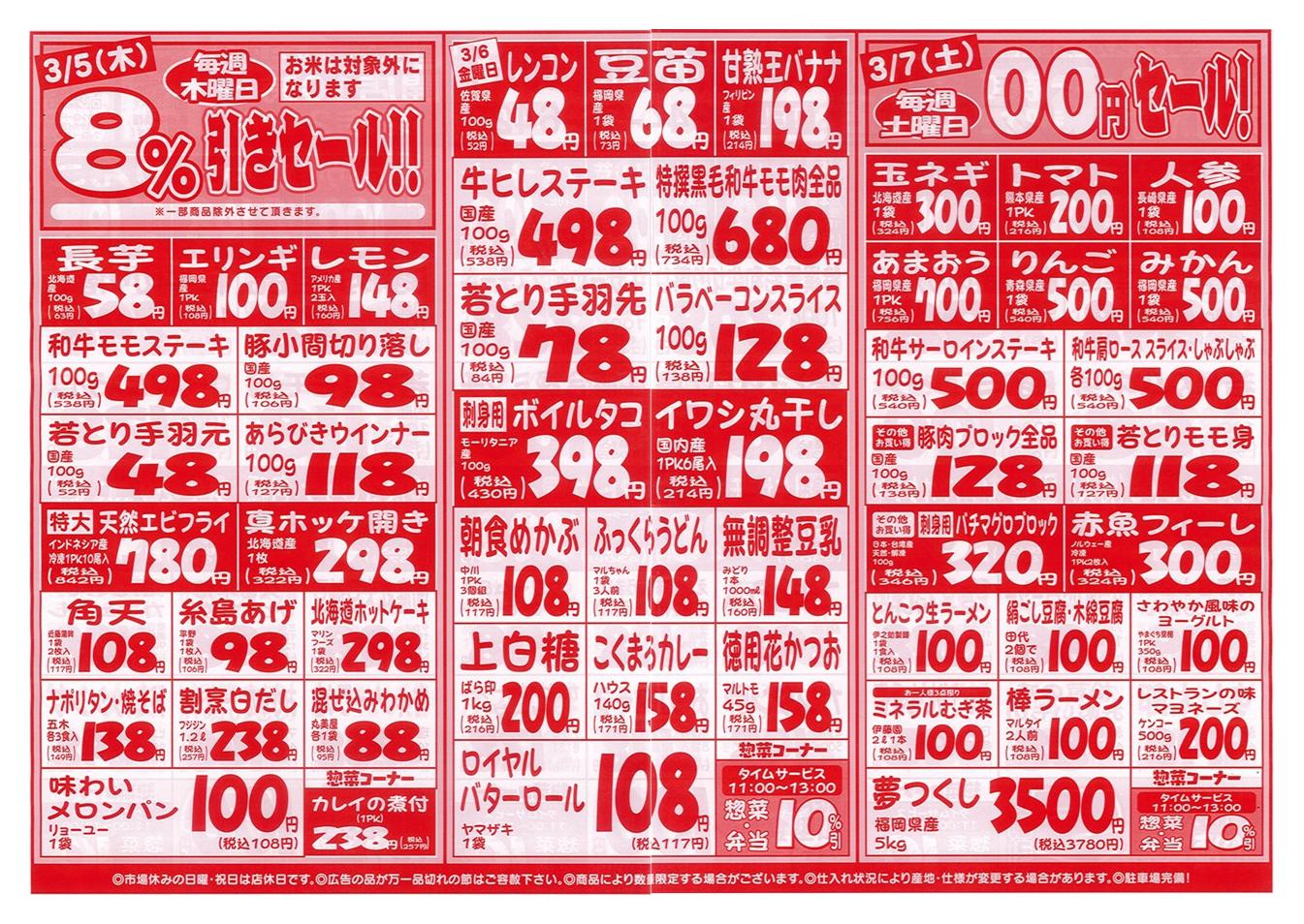 特売やセール情報など最新のチラシを掲載中。(2種類、2枚のチラシを掲載しています)