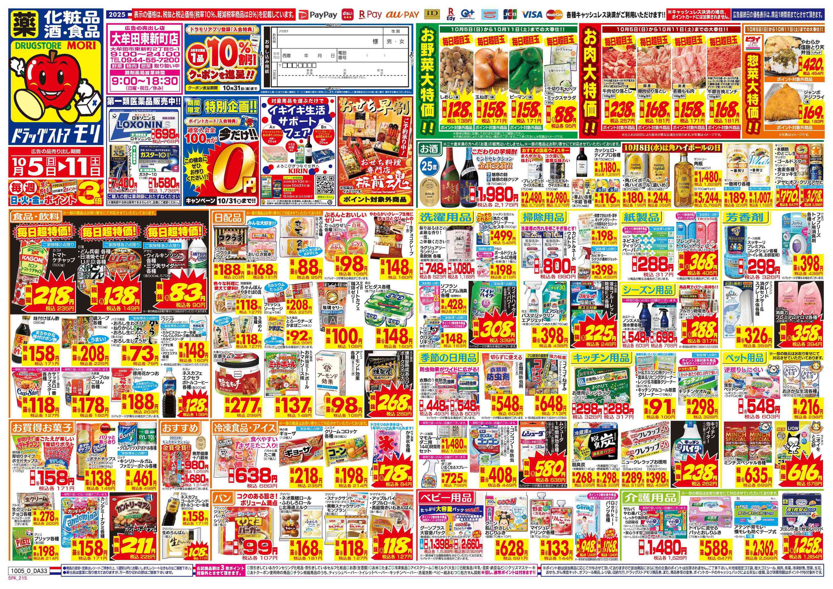 ドラッグストアモリ大牟田東新町店今週のチラシ(2025年10月6日〜10月12日)