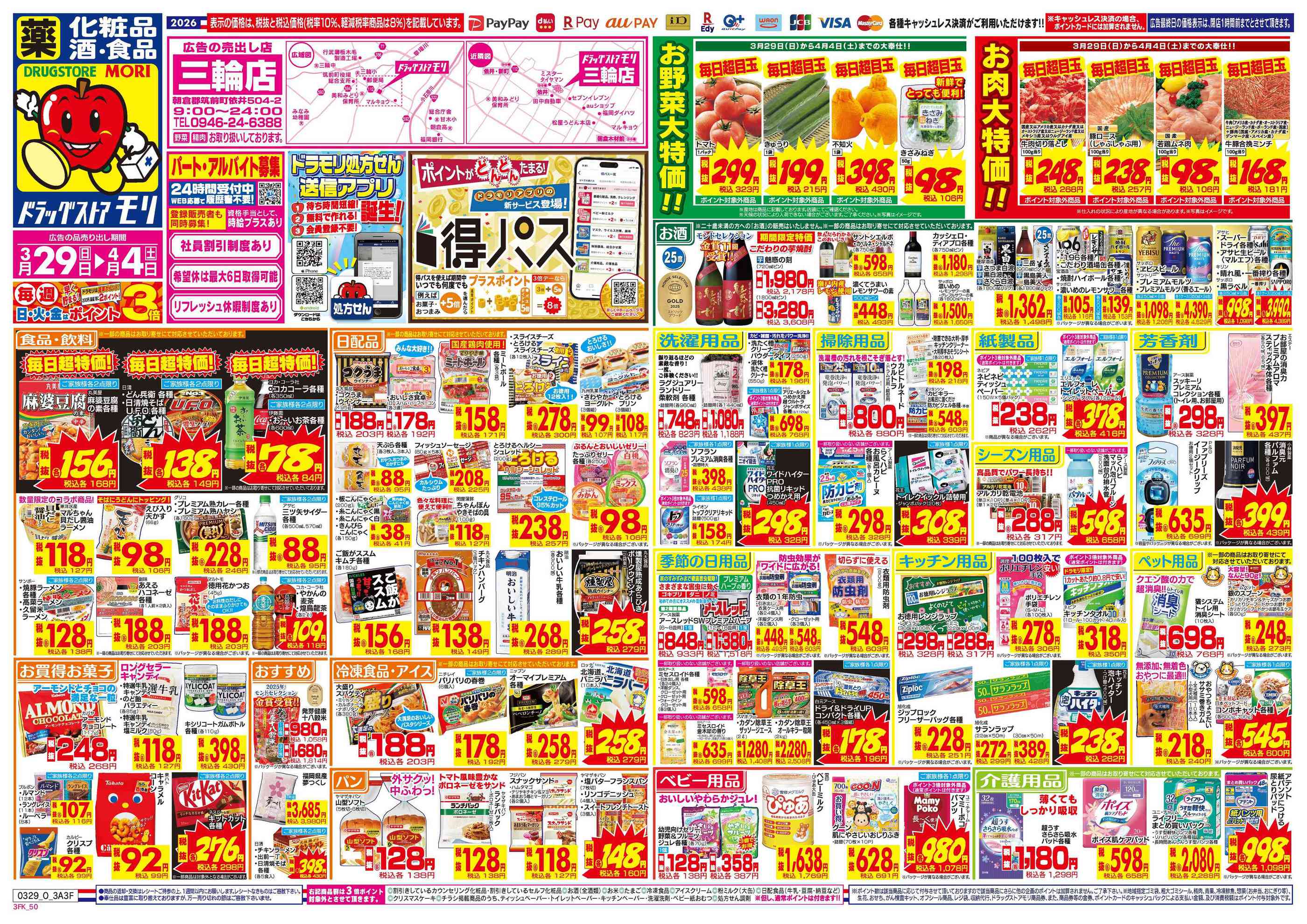ドラッグストアモリ三輪店今週のチラシ(2026年3月30日〜4月5日)